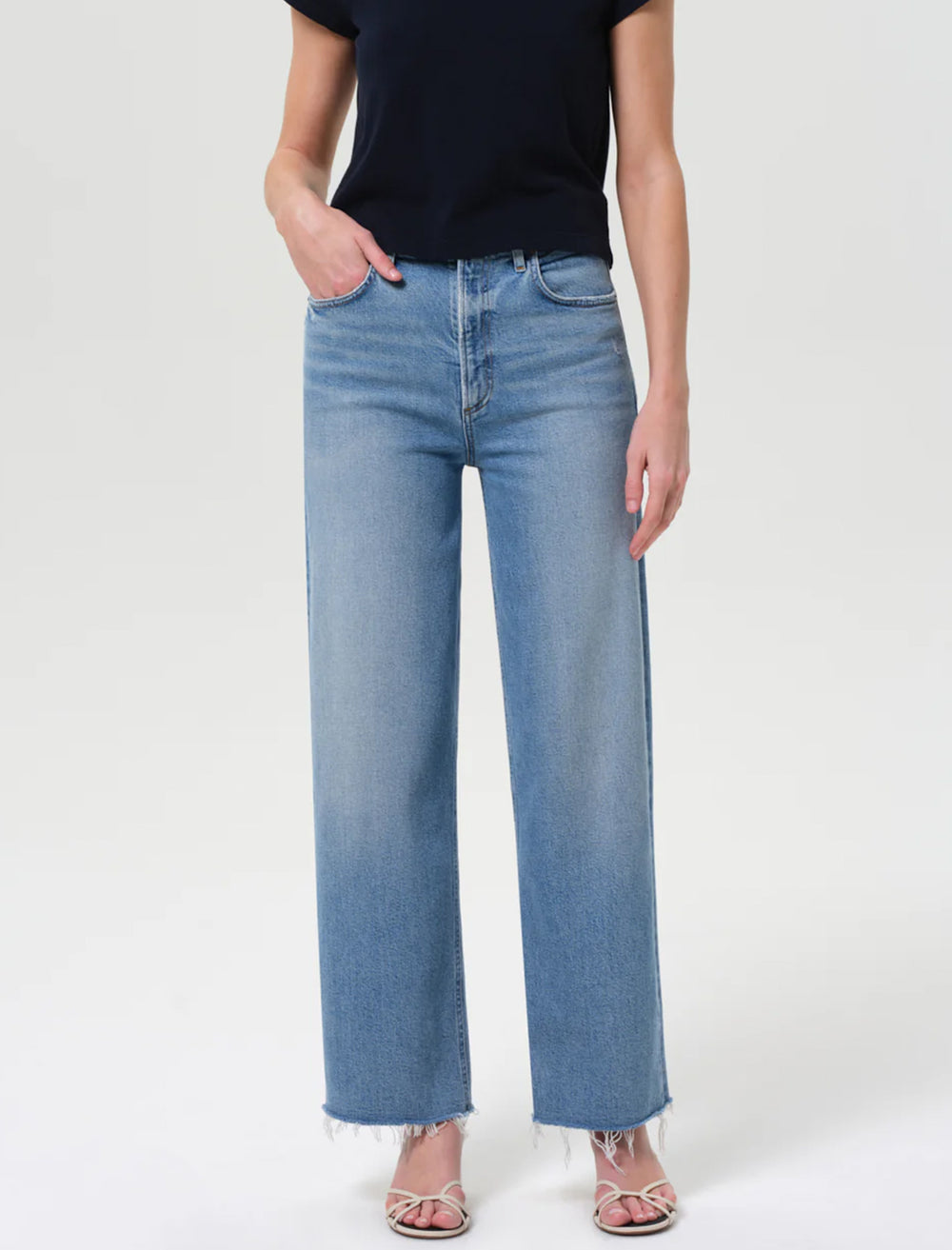 AGOLDE's Ren jeans are crafted with EcoMade Fiber, combining regeneratively grown cotton, Eco-Indigo dye, and plant-based LYCRA® EcoMade Fiber to set a new standard for sustainable denim. Offering a relaxed fit with a high-rise waist and cropped wide legs, these jeans are perfect for casual days. Pair them with a half-tucked tee or sleek bodysuit for an effortlessly chic look.
