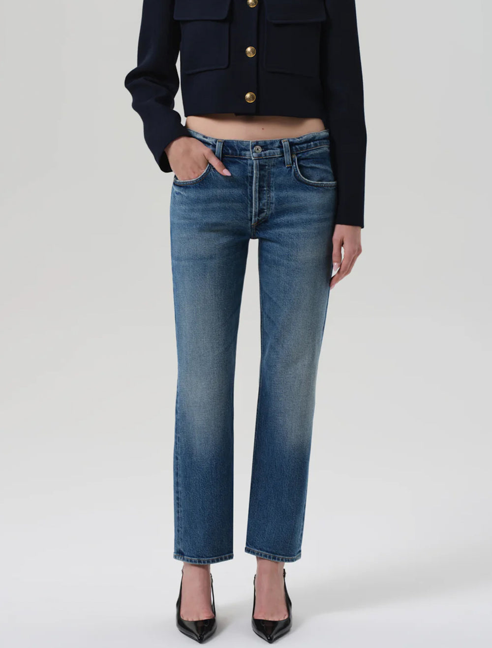 With a nod to early 2000s minimalism, Citizens of Humanity’s ‘Anissa’ jeans reimagine the low-rise silhouette in a refined, straight-leg cut. The ‘Alma’ wash—an endlessly versatile medium indigo—is softened with subtle fading and whiskering to evoke a vintage sensibility. Crafted from comfort-stretch regenerative cotton with a remarkably soft hand, they offer ease without sacrificing structure. Style yours with a slouchy knit or crisp shirting for a nonchalant, downtown look.