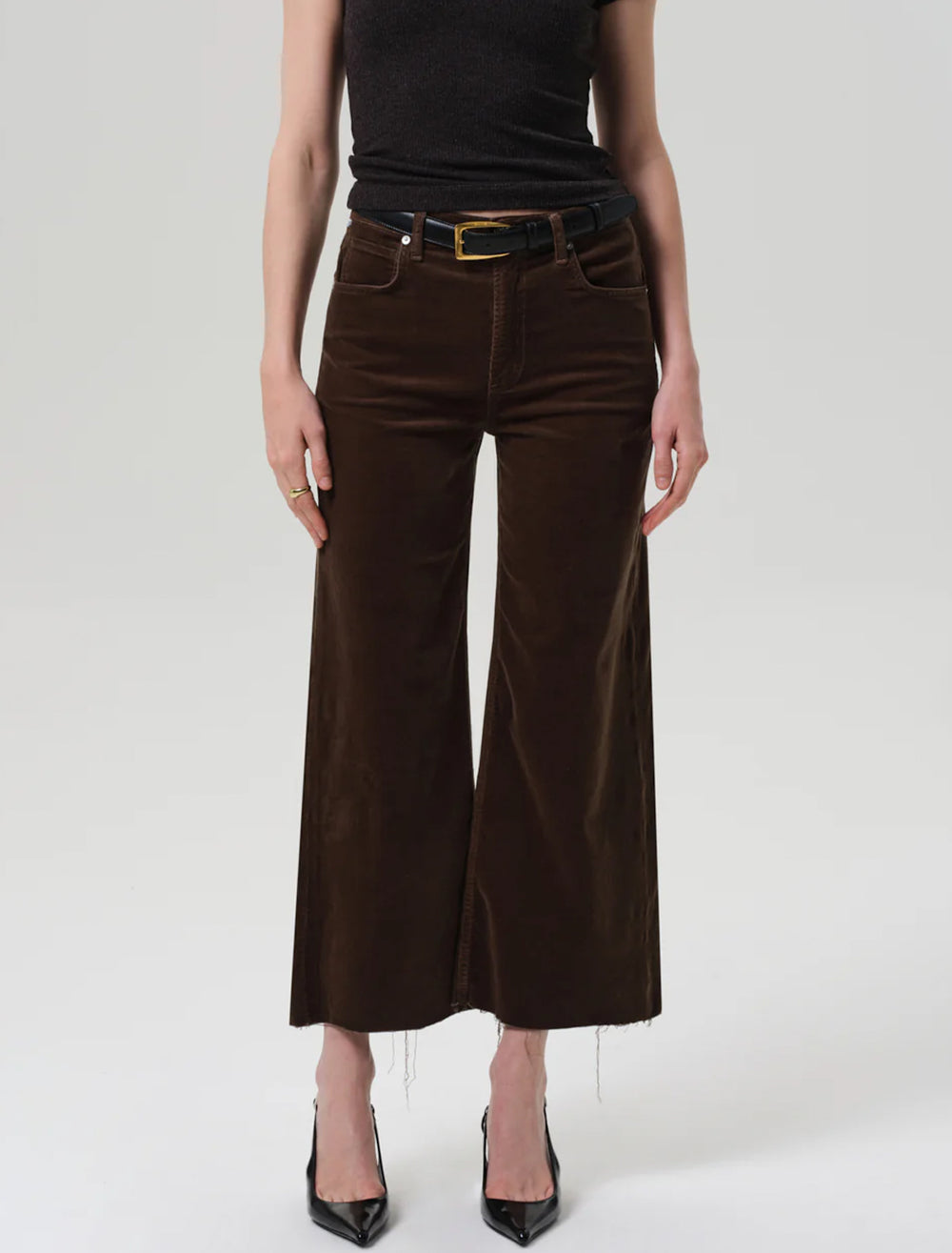 The Lyra is a vintage-inspired wide leg that sits high on the waist with a relaxed top block and cropped inseam for a modern, voluminous silhouette. Crafted from soft stretch baby corduroy, Costes is a rich, medium-to-dark green that adds texture and depth to everyday styling. Pairs effortlessly with any footwear—boots, flats, or sneakers—for all-around versatility.
