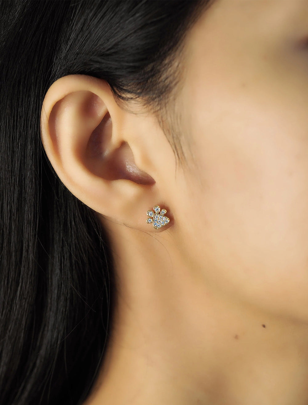 Looking to add something to your collection that has glitz, whimsy, and adorableness? Look no further than these paved CZ paw print stud earrings.