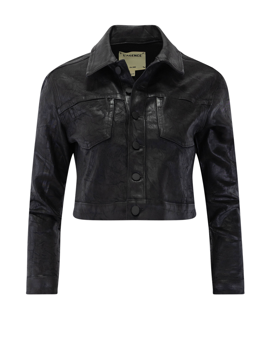 alma crop jacket in black crackle