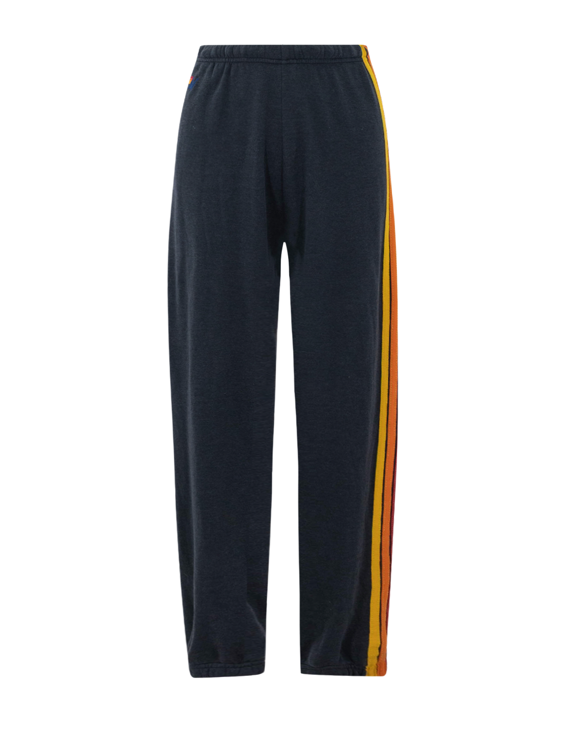 Turn heads in these sweatpants with the Aviator Nation 5 stripe stitch work down the entire leg. The most comfortable sweatpants you'll ever own. Aviator Nation's single needle stitch work gives each garment a unique, one of a kind effect. All of their products go through an intense breaking-down process that gives them a vintage feel you'll love because it's broken in from day one of wearing it. You're going to live in these sweats.