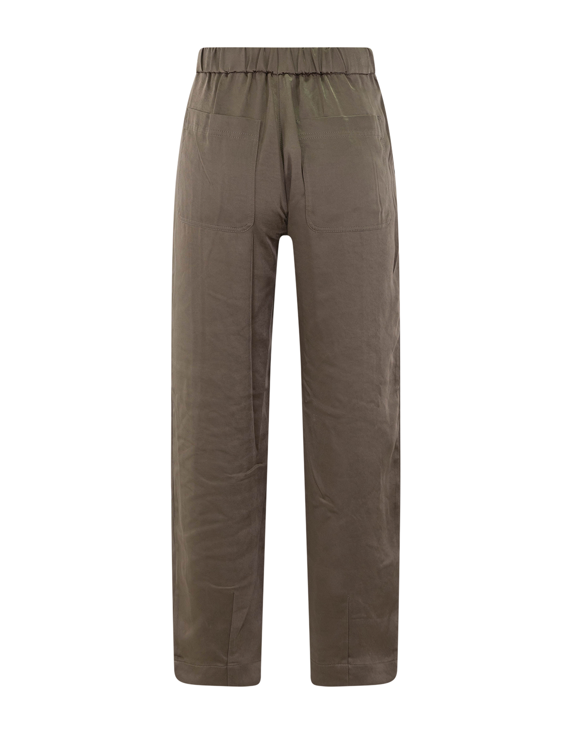 The Satin Fly Front Pant in Lilla P.'s Satin Twill is the perfect balance of polish and ease. Designed with a fly front and an elastic back, this pant offers effortless comfort and a chic look. Dart detailing adds a casual touch, keeping the silhouette relaxed and not-so-serious.
