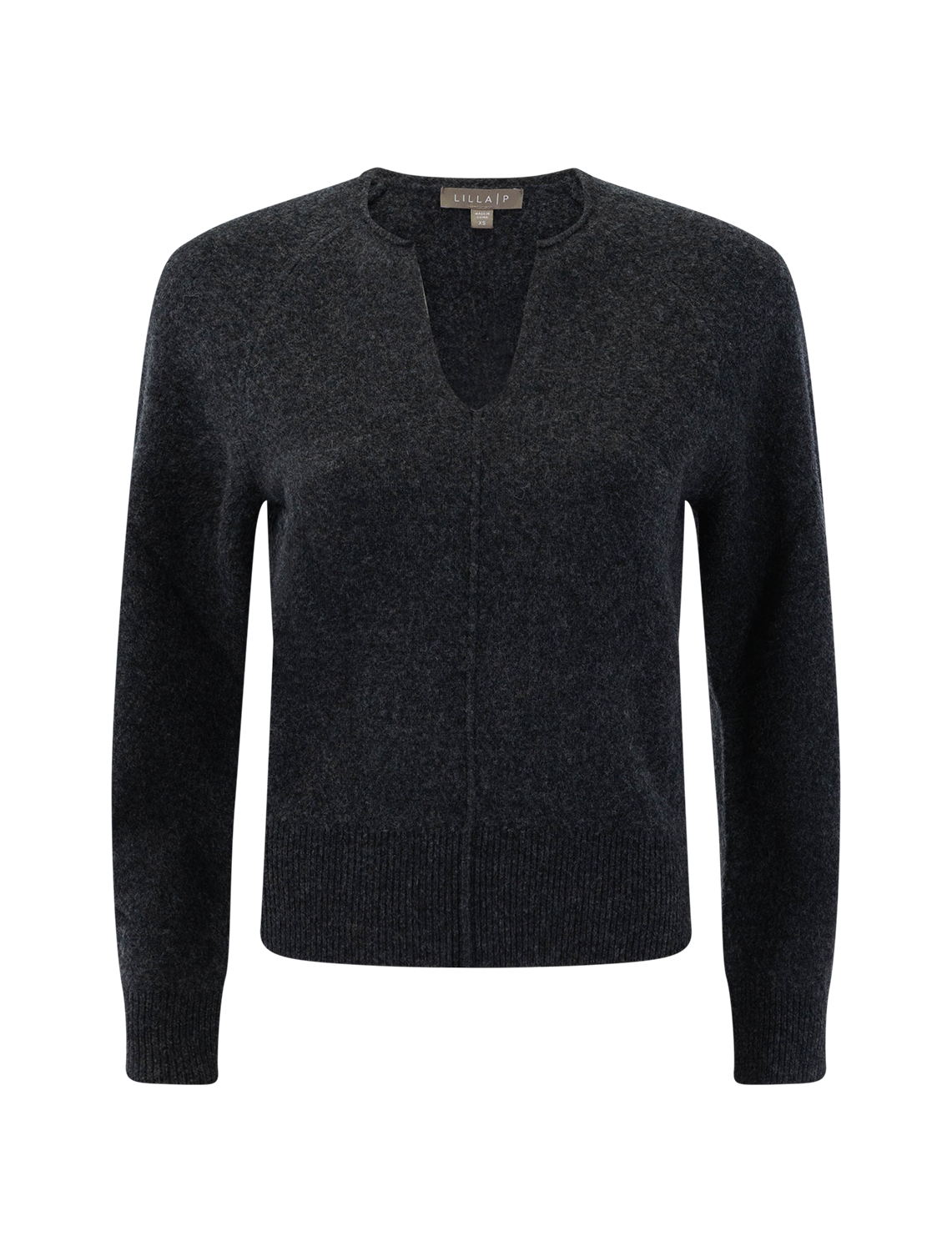 Lilla P.'s Split Neck Raglan Pullover in Graphite.