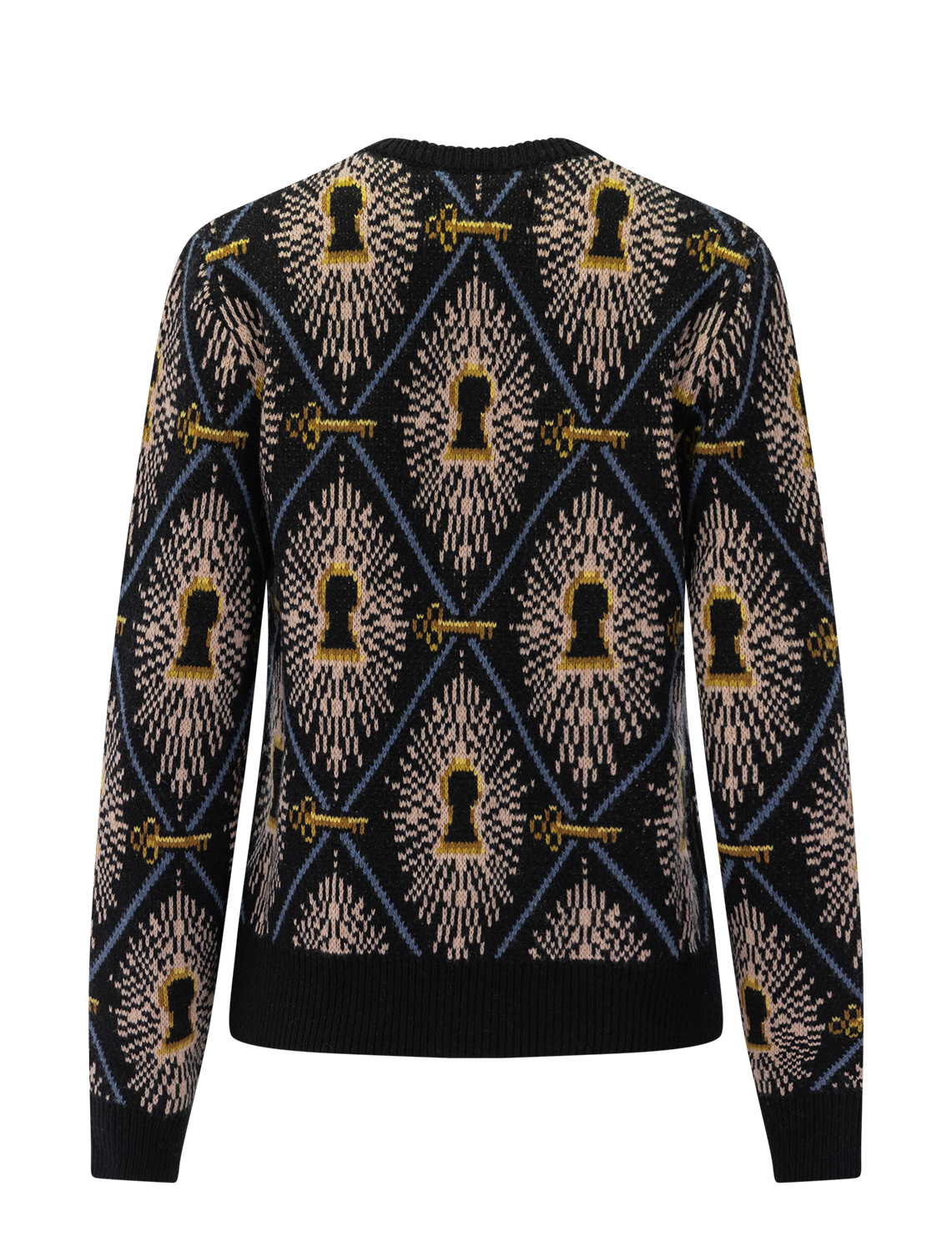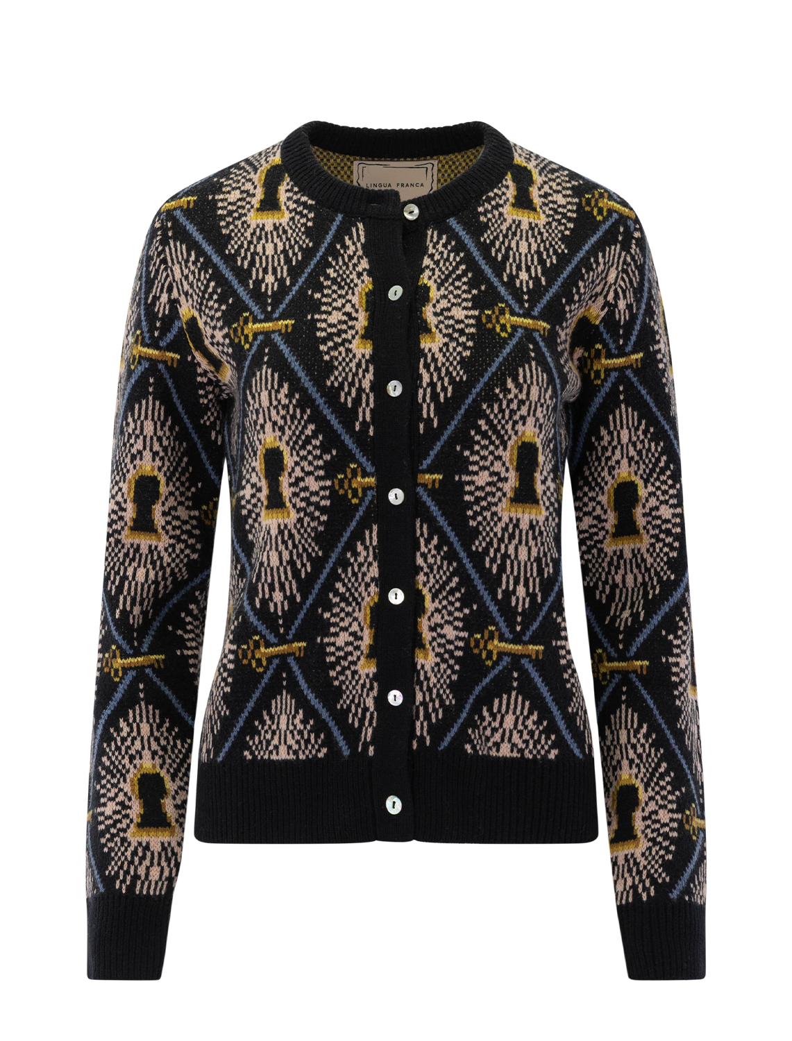 The Getty Cardigan is a jacquard-knit piece featuring a keyhole and eye motif. Designed with a classic fit and relaxed shape through the body and sleeves, it’s the perfect balance of structure and ease. Worn by and named after iconic New Yorker Ivy Getty.