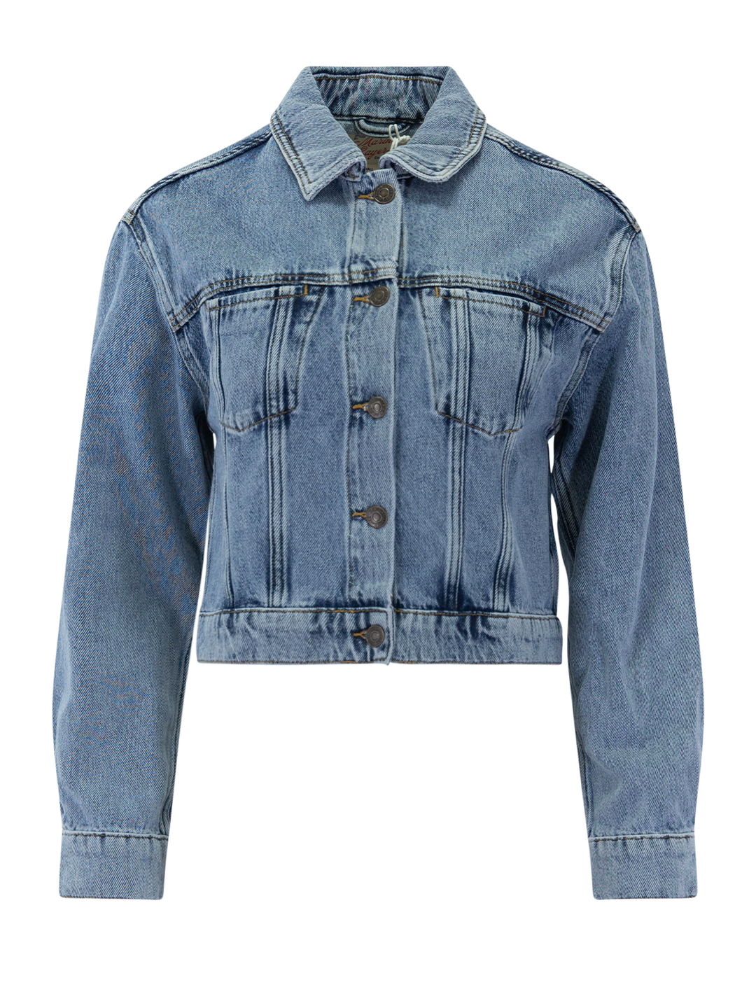 cropped denim jacket in medium wash
