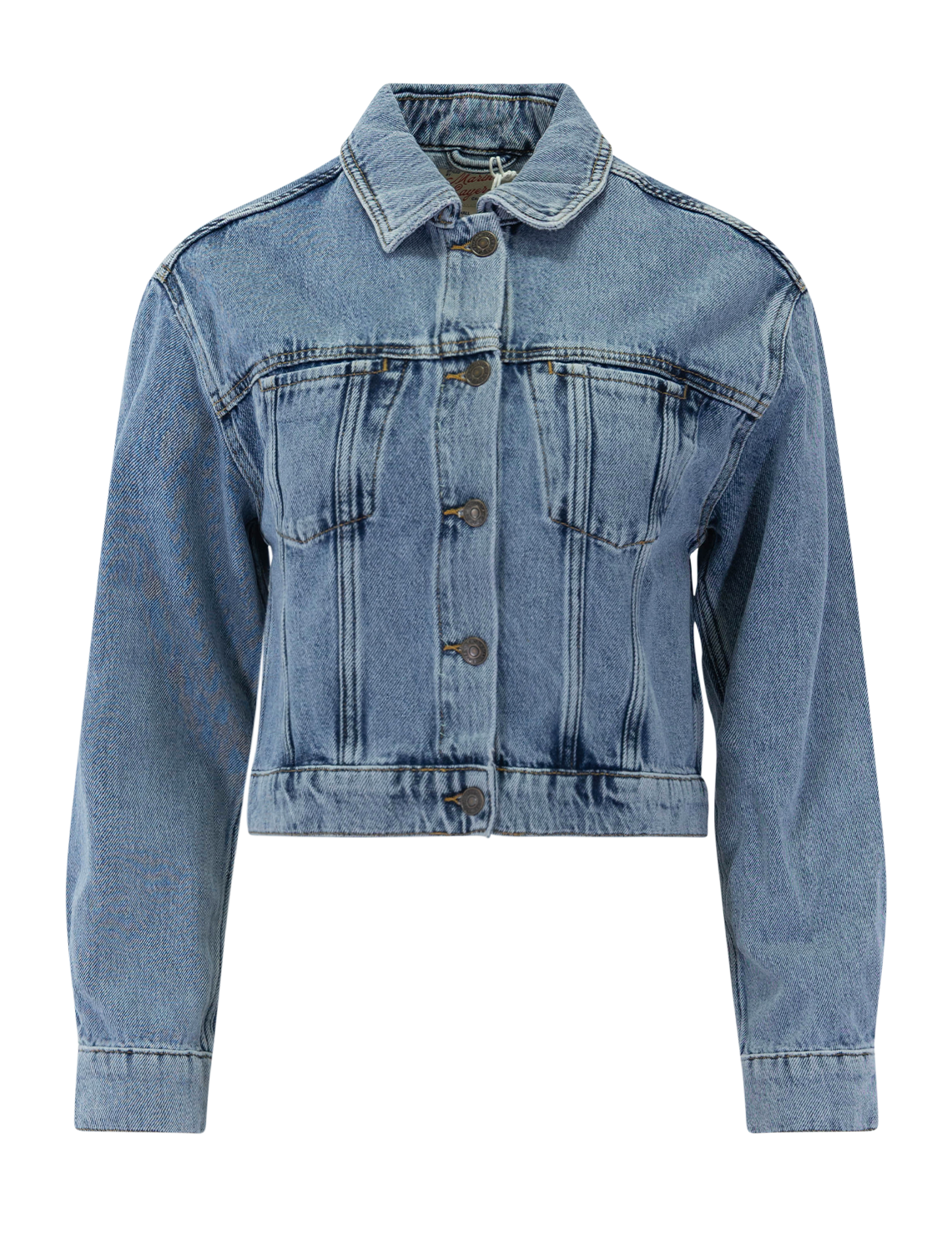 This is the jacket you throw on when you don't want to think too hard, but want to look like you did. Classic trucker details meet a modern cropped length, giving it that just-right balance of structured and easy. Wear it over dresses, tees, or poplin sets and suddenly the whole outfit feels intentional.