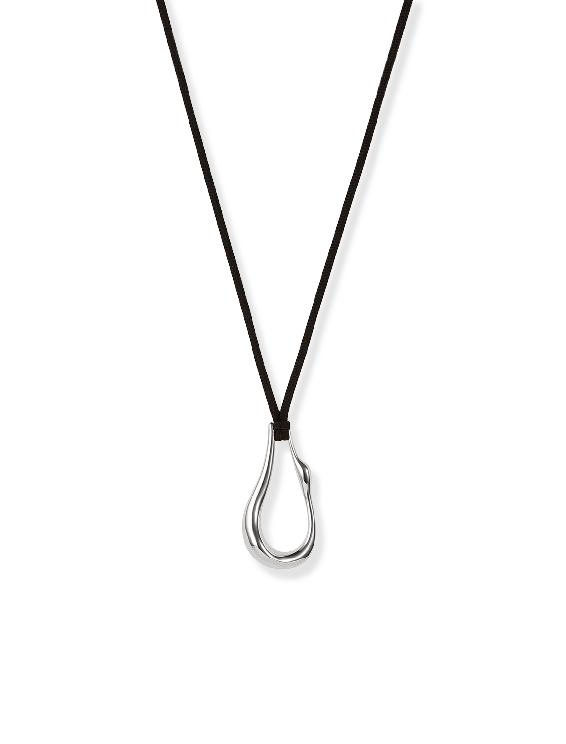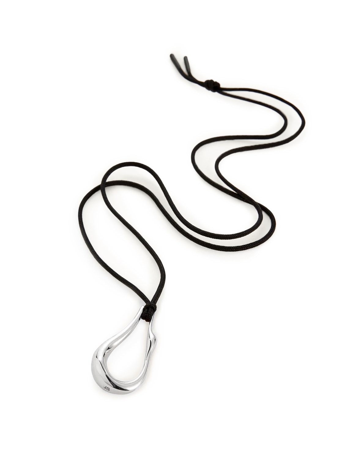 The egret bird's elongated neck is featured in profile on this rope pendant necklace. The pendant is finished in high-polish silver and hangs from a black cord made of recycled polyester. To readjust the cord, simply re-tie the knot closure to your preferred length.