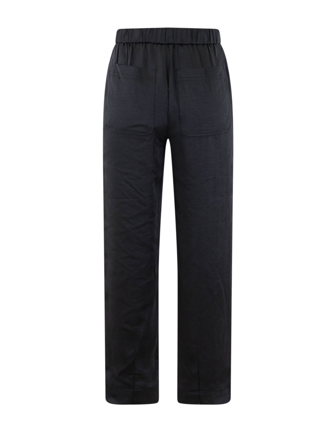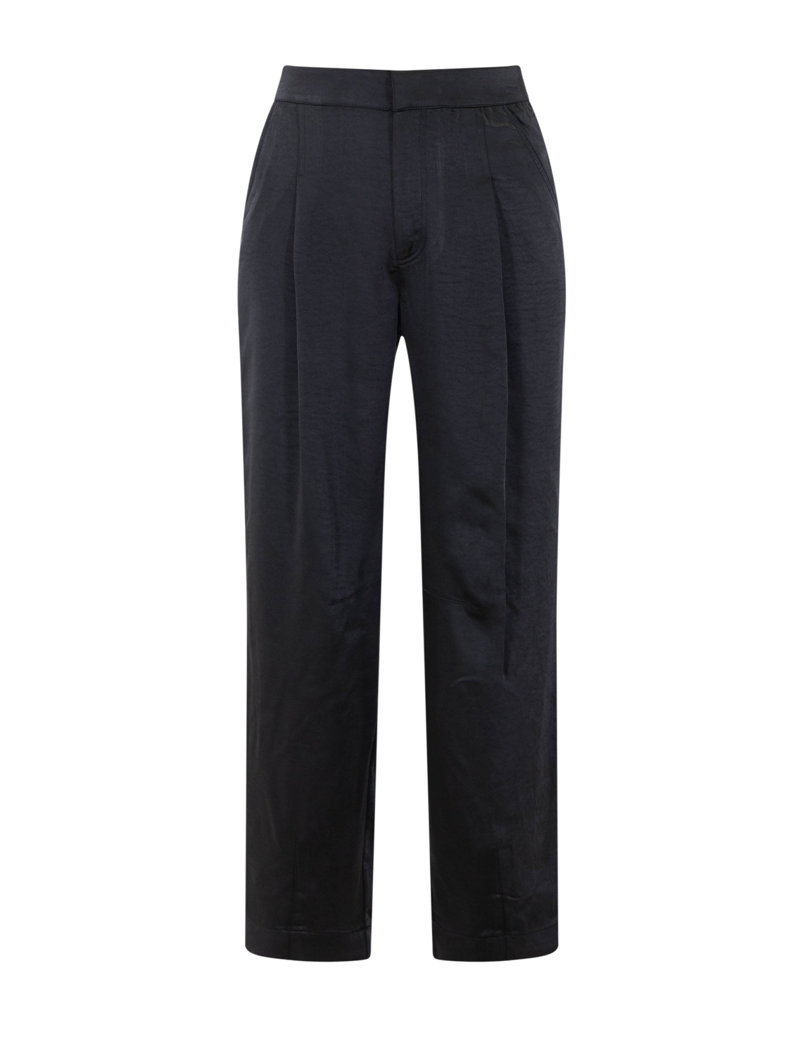 The Satin Fly Front Pant in Lilla P.'s Satin Twill is the perfect balance of polish and ease. Designed with a fly front and an elastic back, this pant offers effortless comfort and a chic look. Dart detailing adds a casual touch, keeping the silhouette relaxed and not-so-serious.