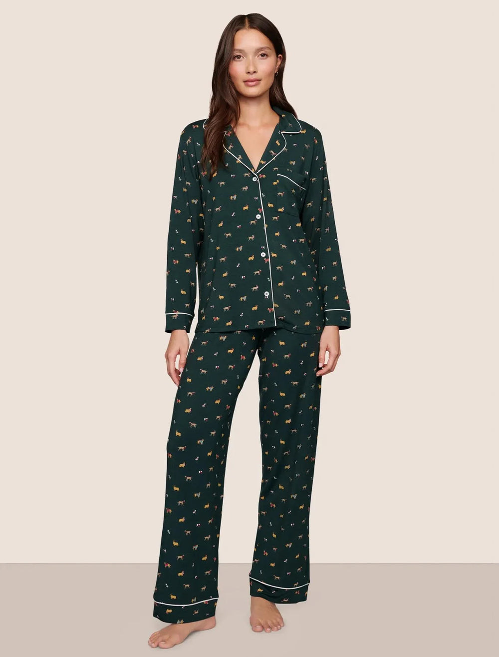 gisele long ribbon pj set in holiday dogs pine and ivory