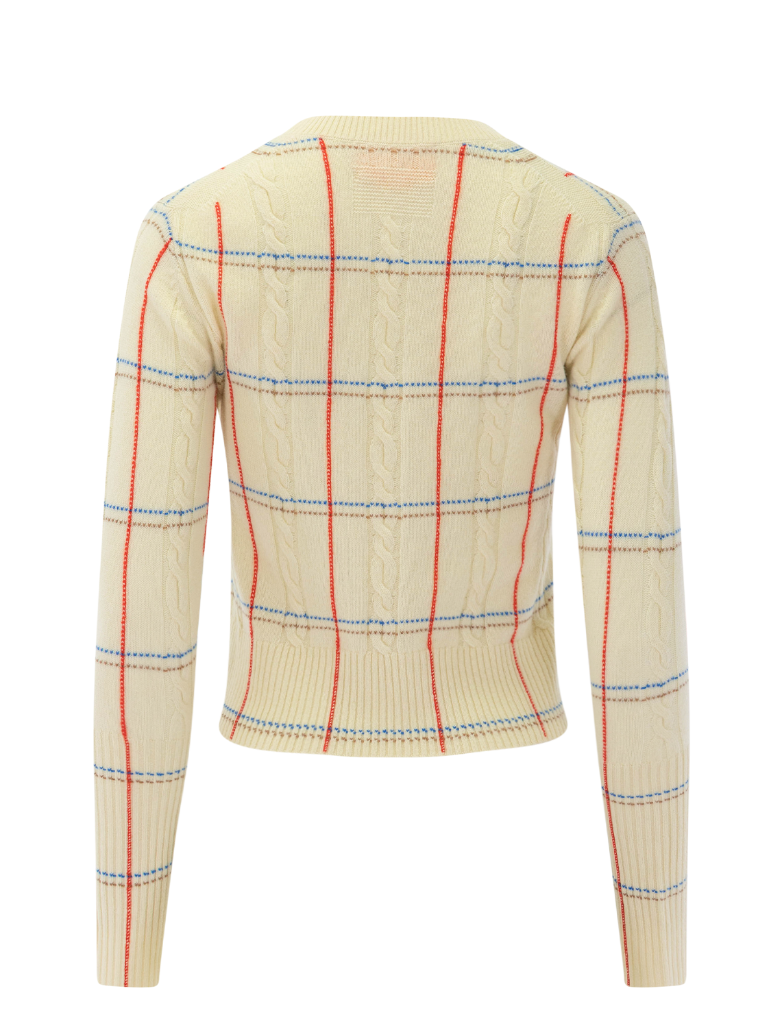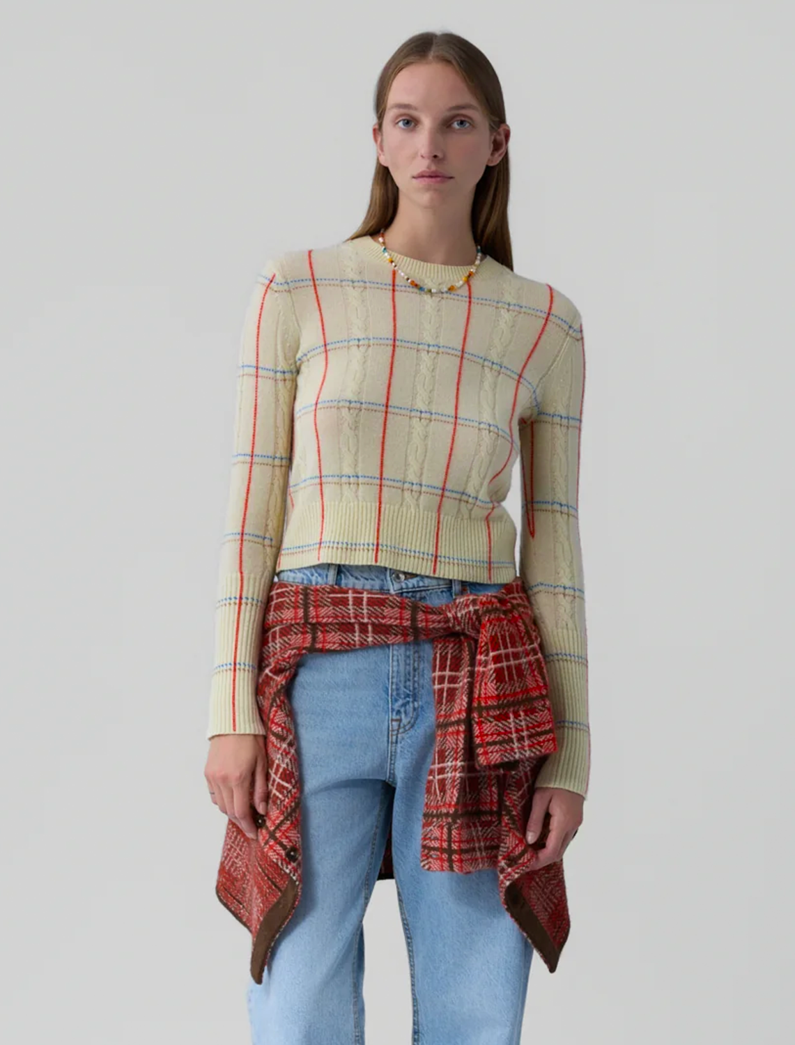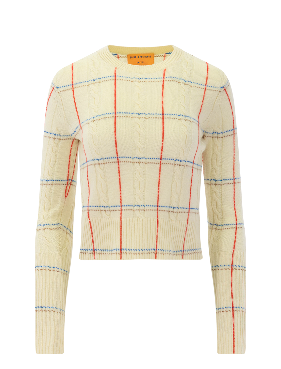 The Shrunken Check Crew is a women’s 100% cashmere sweater featuring a modern check jacquard pattern. With the same slim fit and mid-weight feel as our signature Shrunken Crew, it brings a fresh, graphic update to a timeless Guest In Residence staple.