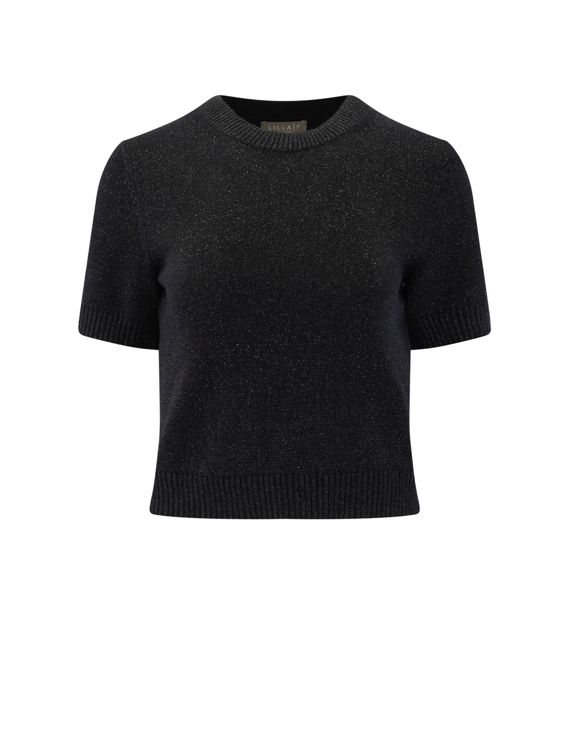Lilla P.'s Short Sleeve Sparkle Sweater in Black.