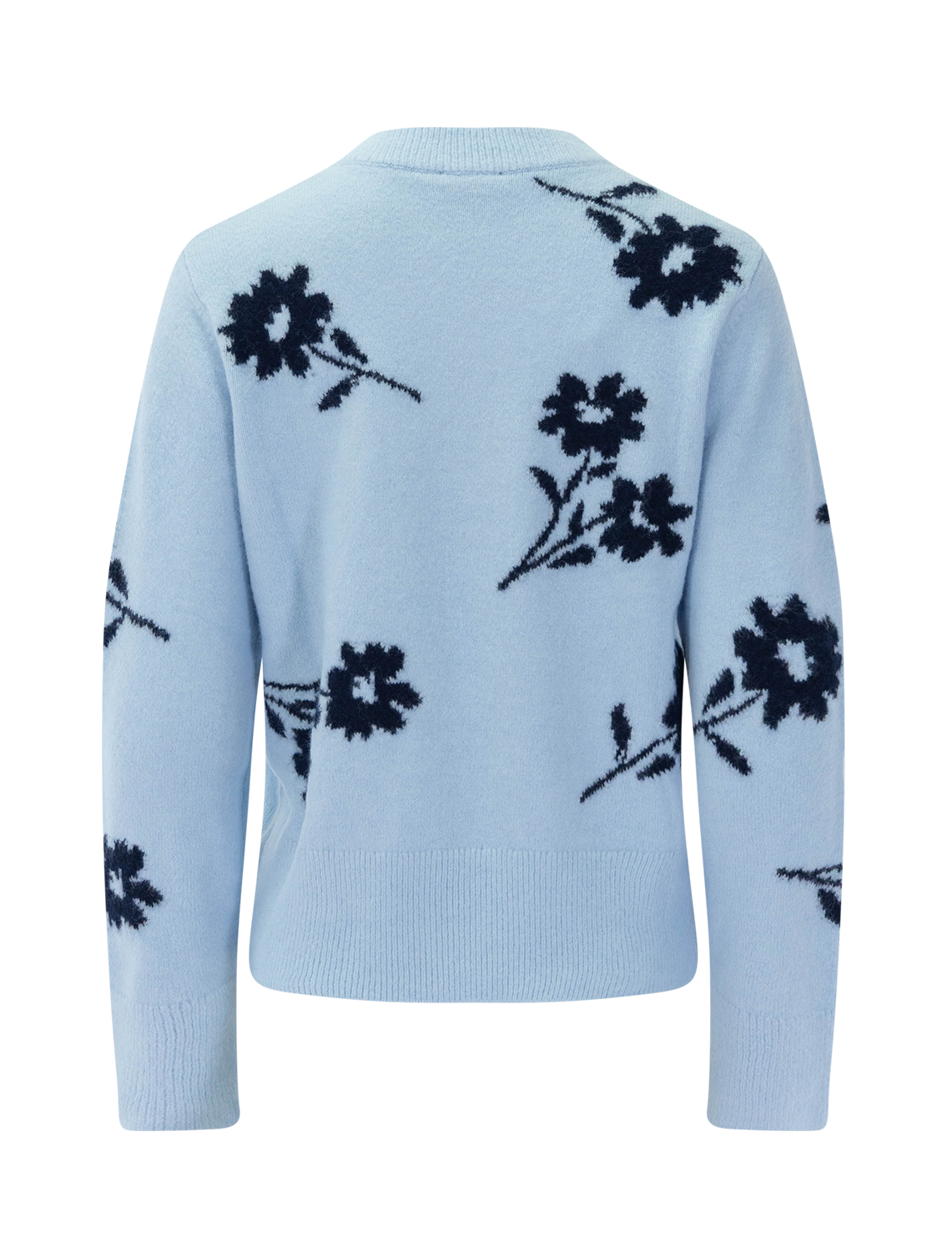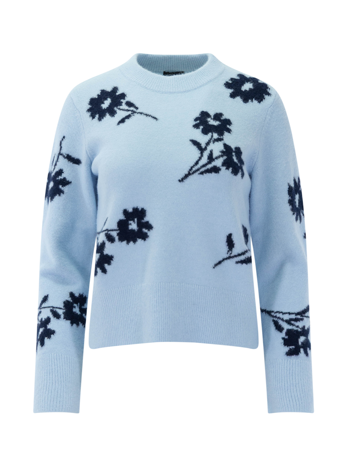 The Anise sweater exudes feminine charm with vintage-inspired contrast floral motifs. Knitted from a cozy wool blend, it features a classic crew neckline, long sleeves, and a relaxed, boxy fit.