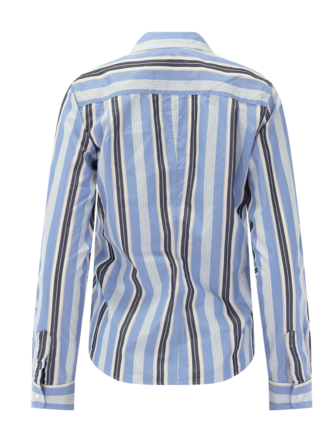 - signature bust flattering button placement with chest pocket and long sleeves with button cuffs