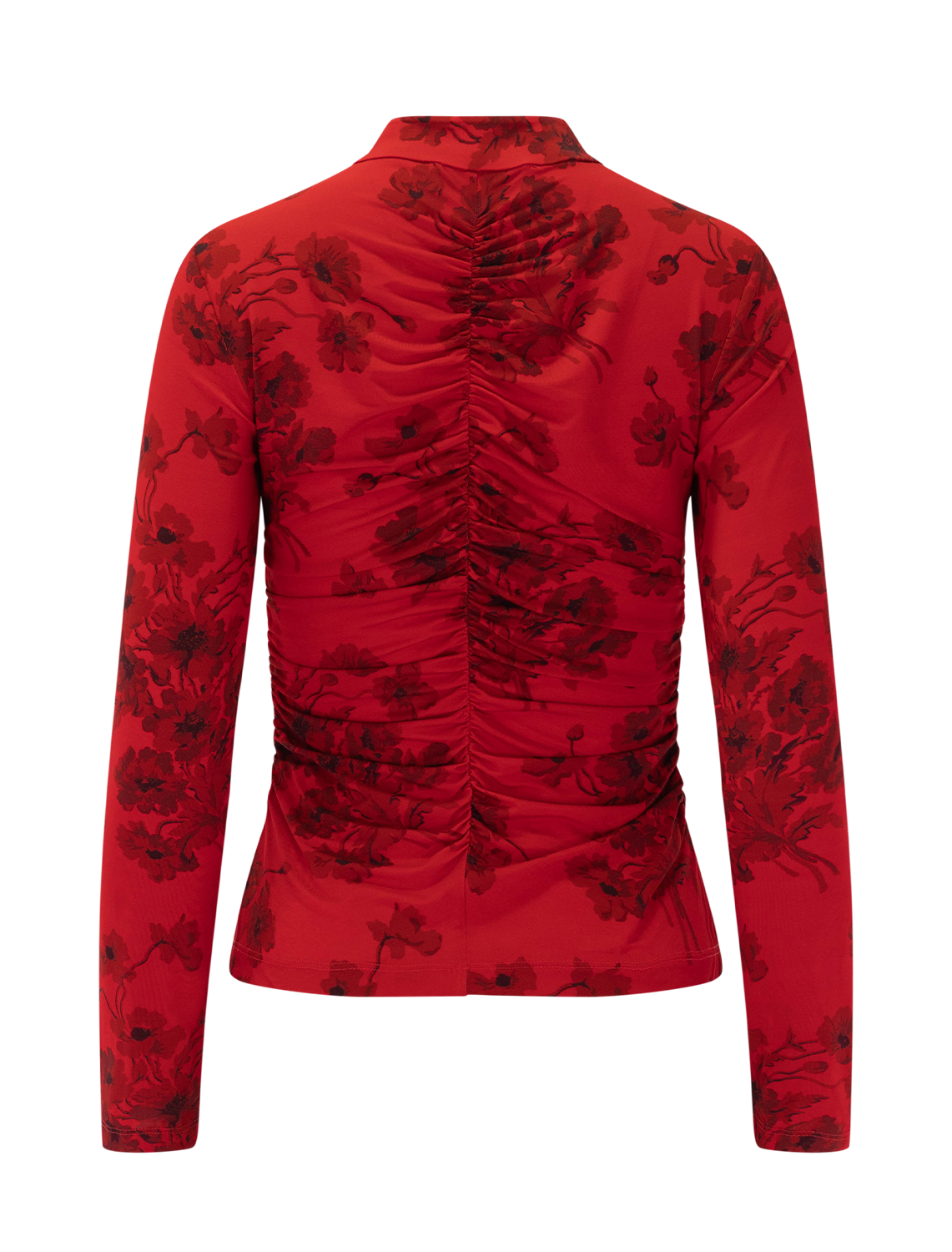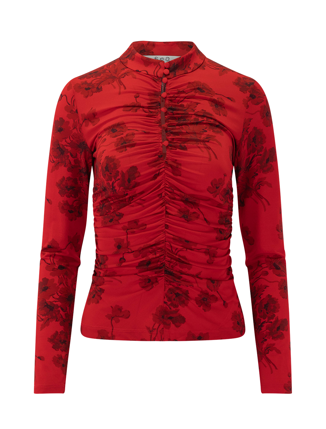The Cornelia floral print long sleeve top is designed with a high neckline and detailed ruching along the front and back, creating a flattering, softly gathered silhouette. Its long sleeves and romantic print lend an effortlessly polished finish.