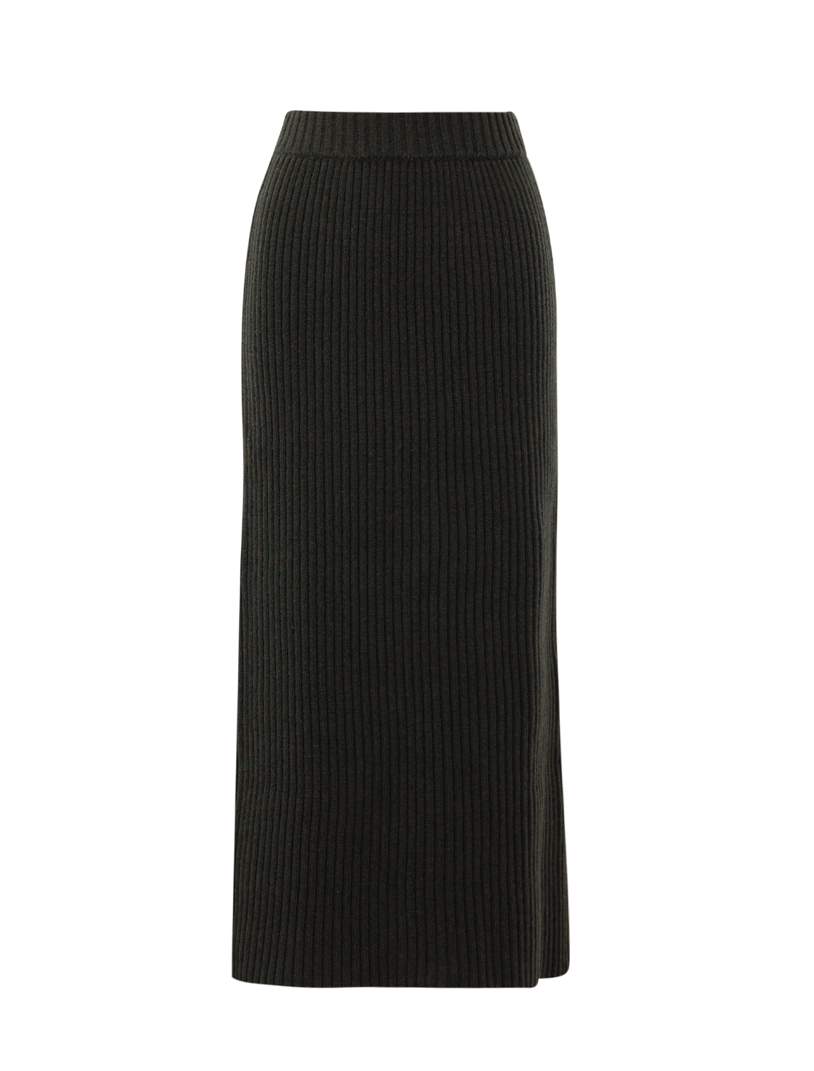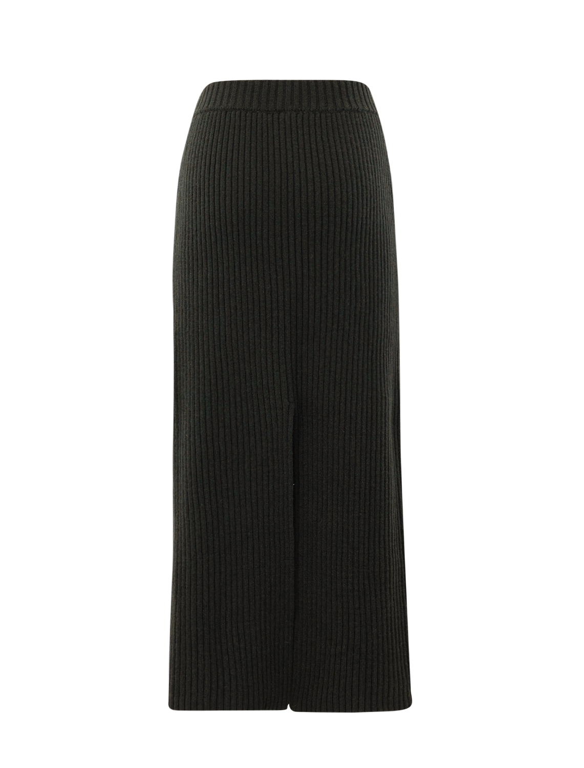 Ribbed knit pencil skirt made in Italy. Slit detail that can be worn at the front or back.