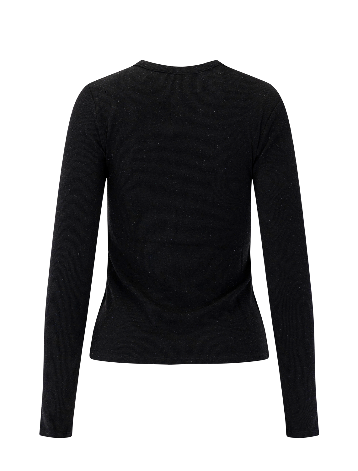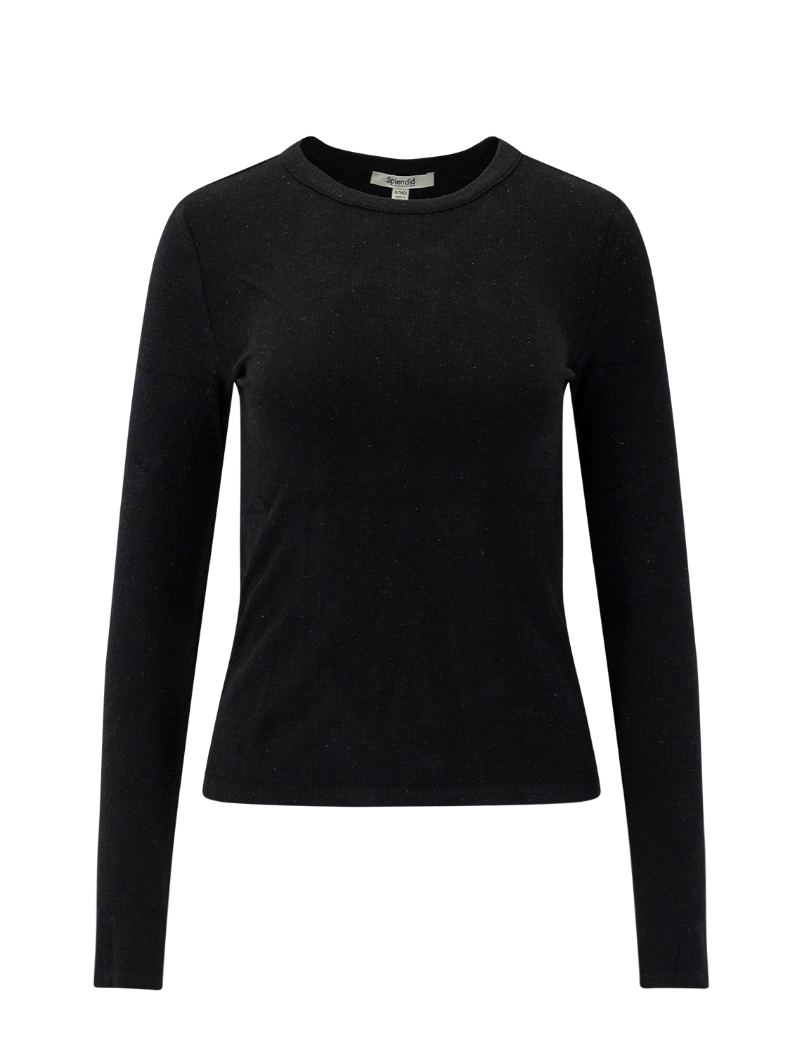Isabella is an essential fitted tee with a hint of shine for a subtle holiday sparkle. Crafted from stretch jersey with a thin rib texture, this long sleeve tee is perfect for layering and tucks into joggers and jeans with ease.