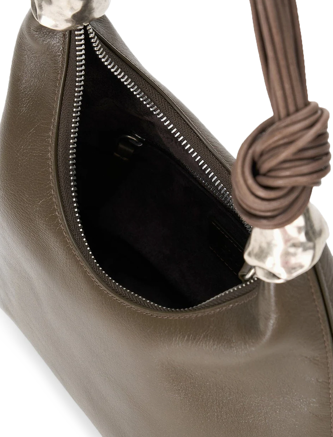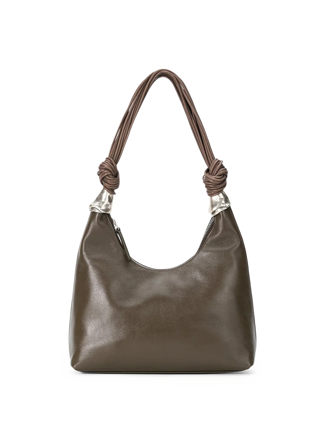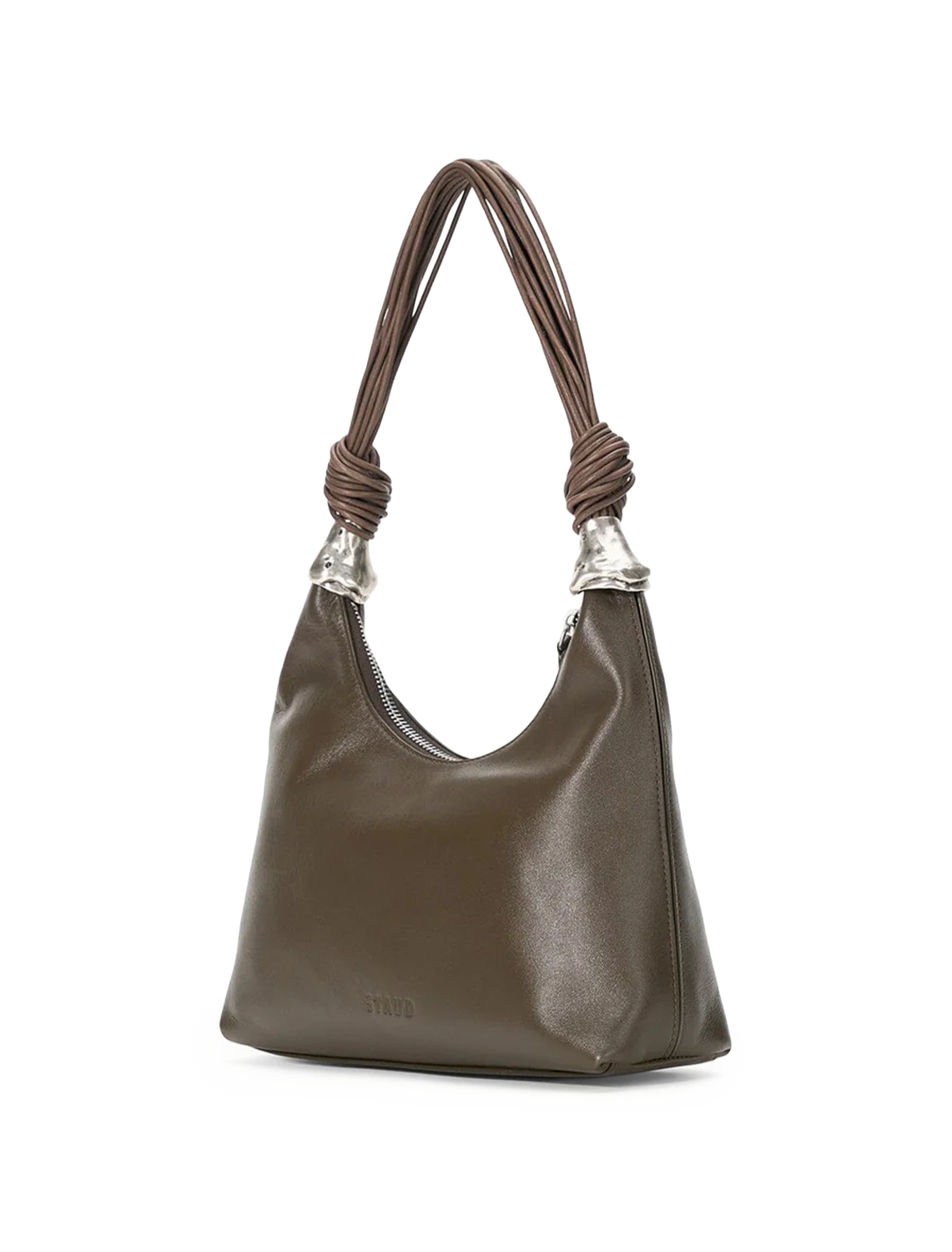The Cuff Shoulder Bag features our new metal cuff hardware at the base of the leather corded shoulder straps. It has a zip top opening and includes an interior zipper pocket to safely store your essentials.