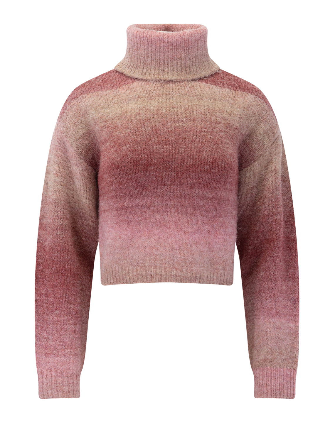Steve Madden's Raegann Ombre Sweater features a classic turtleneck and long sleeves in a striking multi-color gradient. Pair with the matching knit skirt for an effortlessly coordinated look.