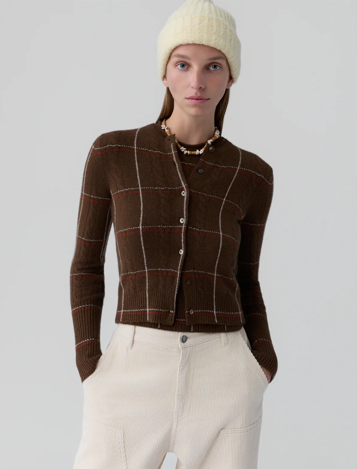 The Jane Check Cardigan reimagines a timeless layer in 100% cashmere with a classic check jacquard. With its easy fit and button-front design, this women’s cashmere cardigan adds a touch of polished funk — perfect layered over a tee and styled with your favorite denim.