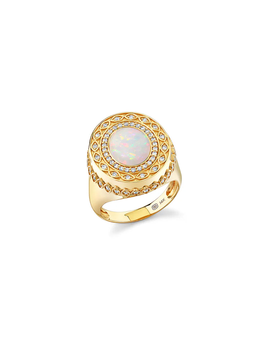gold and diamond marquise eye cabochon signet ring