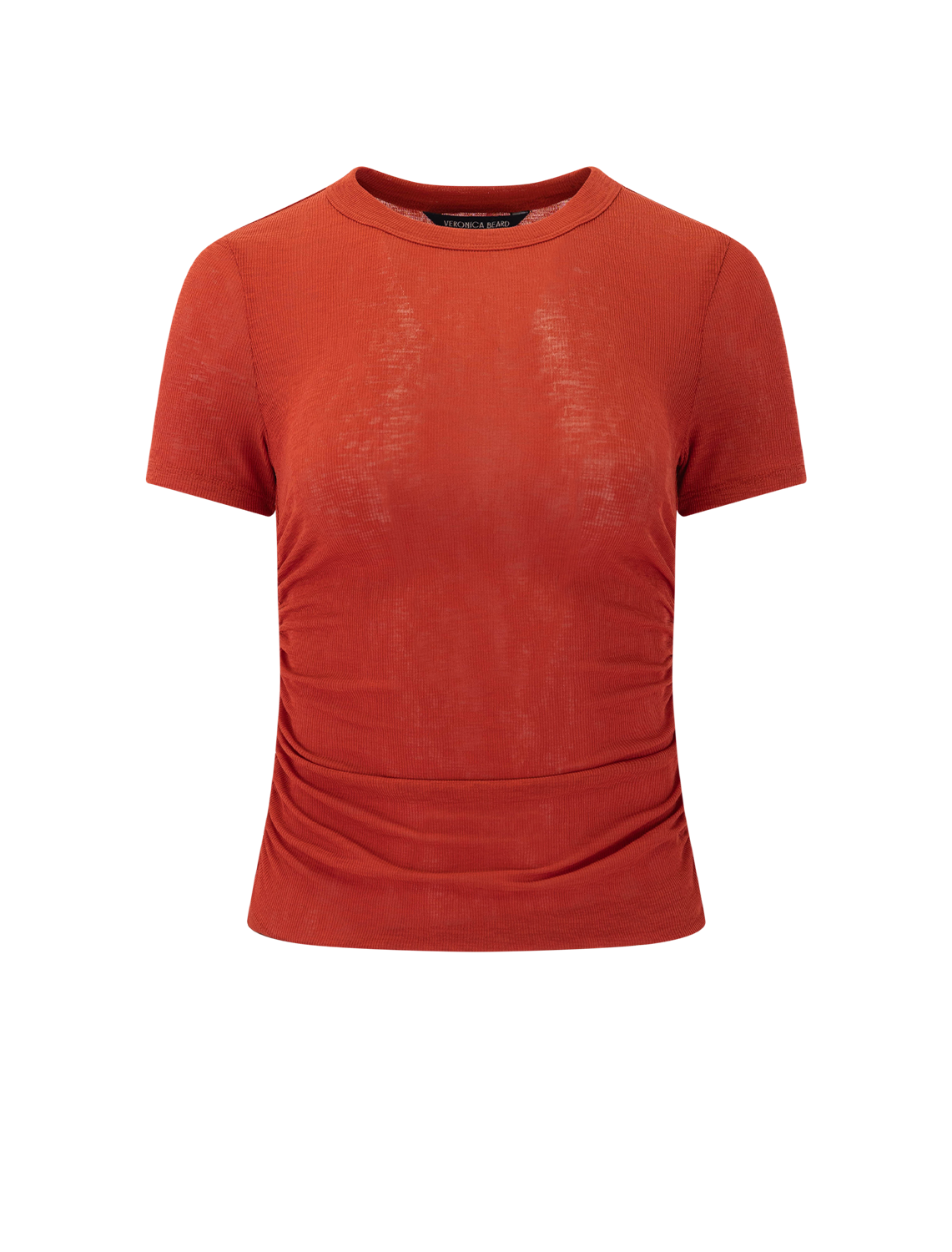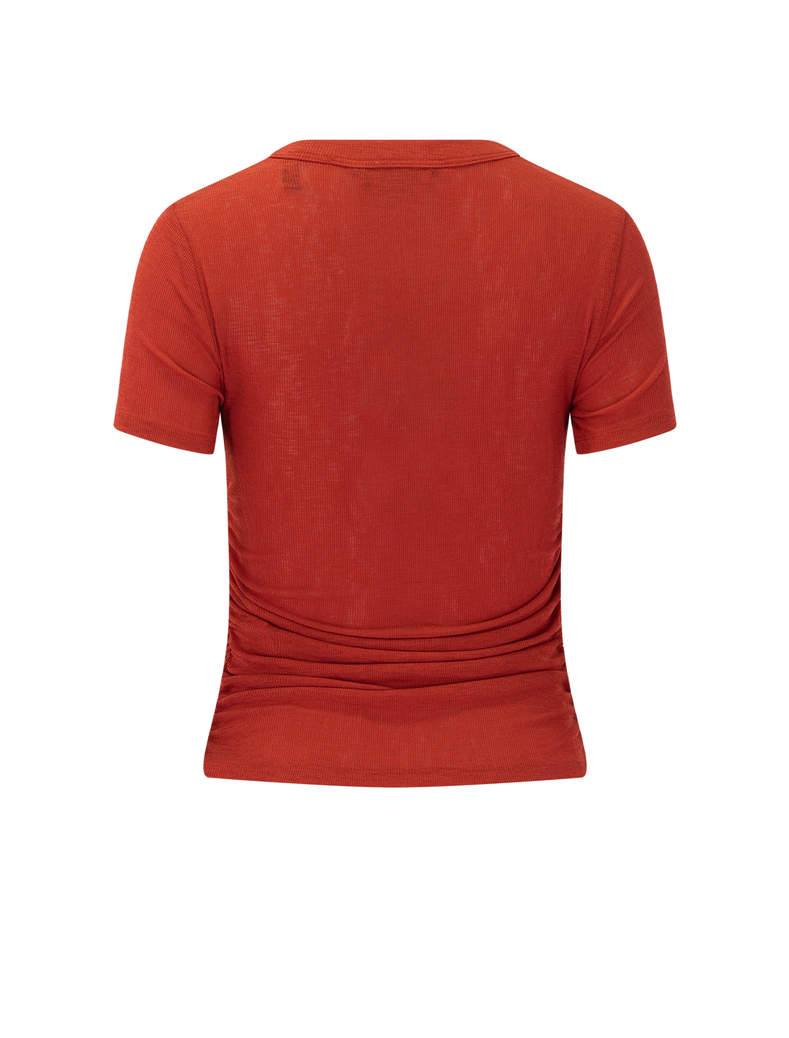 A refined take on the classic tee. Crafted from a premium stretch blend in carnelian red, the Remus T-shirt is cut for a slim, body-hugging fit, defined by ruching along the waist for a cinched effect. Finished with a crew neckline and short sleeves, it’s an endlessly versatile foundational piece. Style it with denim, trousers, or skirts alike.