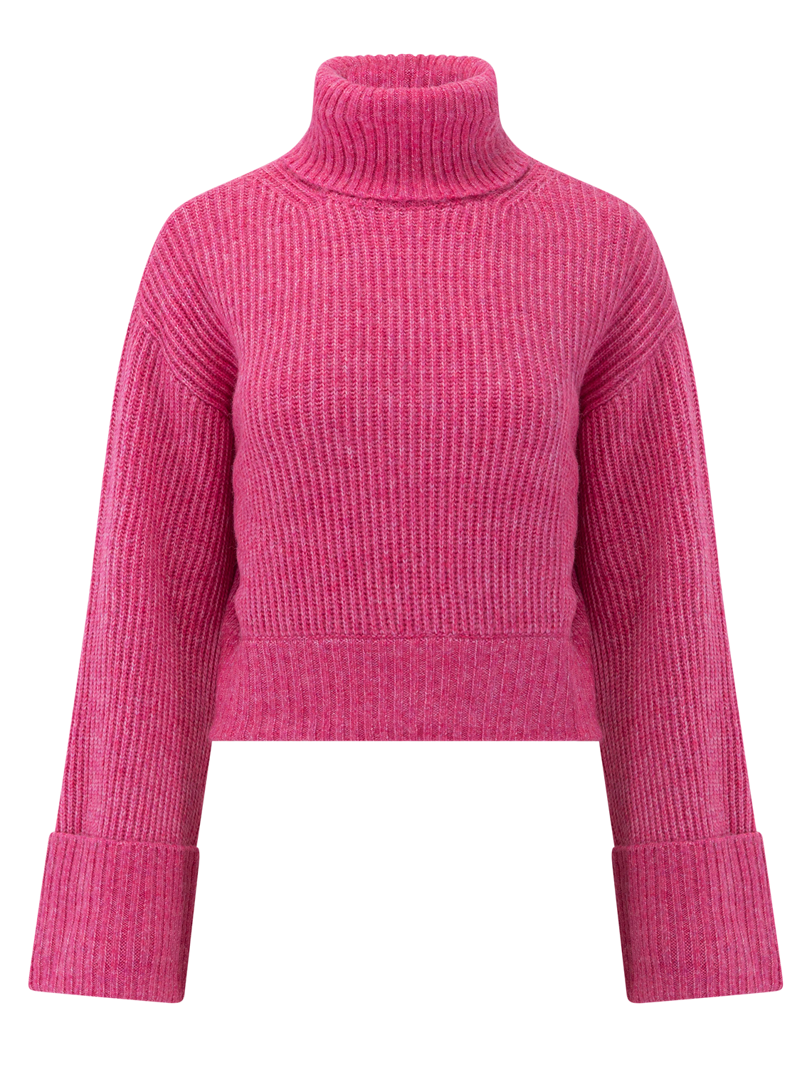 Wide sleeves and dropped shoulders amplify the cozy-chic vibes of a turtleneck sweater in a slightly cropped length.