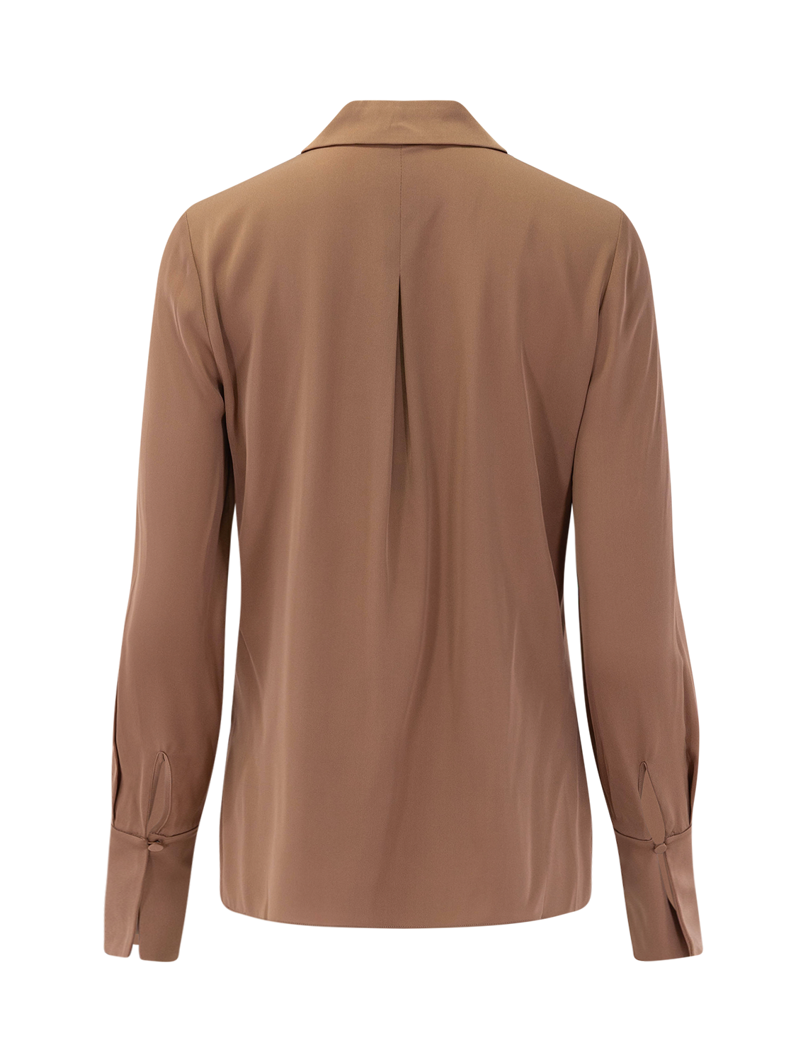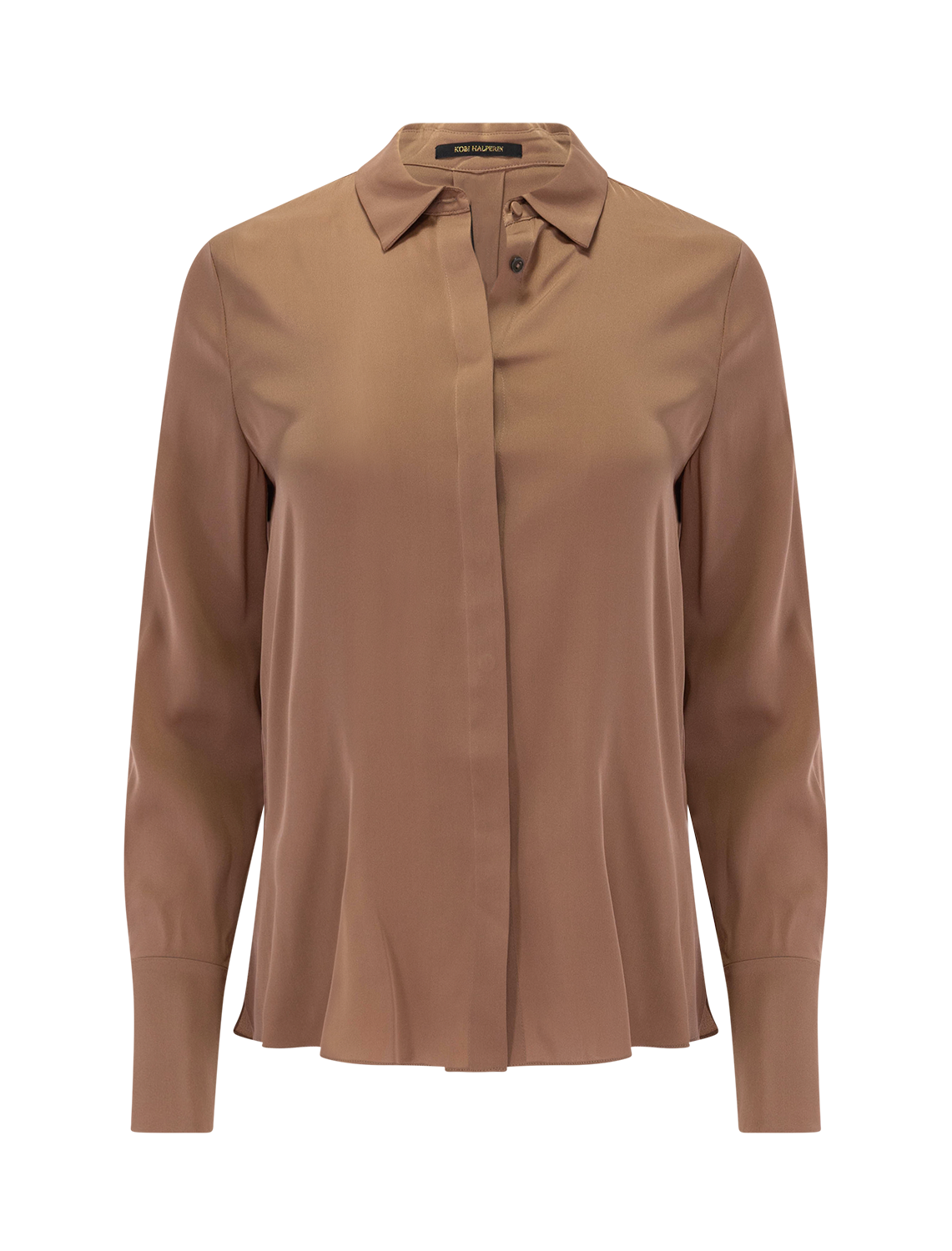 Kobi Halperin's Larissa Blouse in Oak, featuring a back inverted pleat.