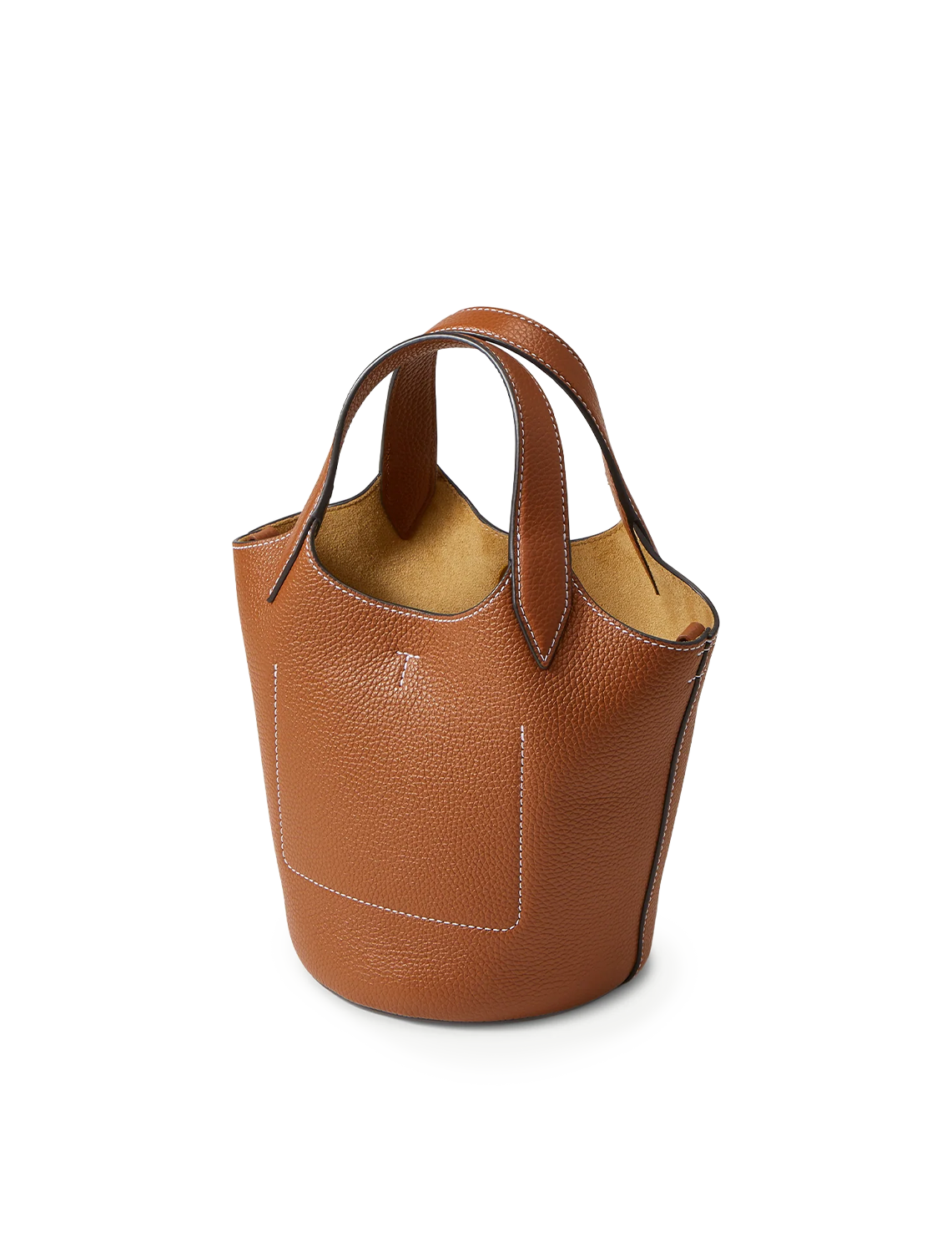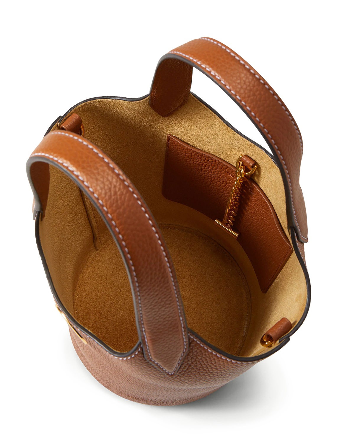 Defined by a minimalist, refined silhouette, the Anchor bag is your go-to for everyday essentials. Crafted from soft tan pebbled leather, it features double top handles for effortless carrying, while an adjustable, removable strap offers a seamless transition from tote to crossbody bag. Structured sides and a flat base allow it to stand upright for easy access. Finished with gold toggle hardware for a polished look, an interior pocket keeps smaller items secure. Perfect for week-to-weekend—just grab and go.