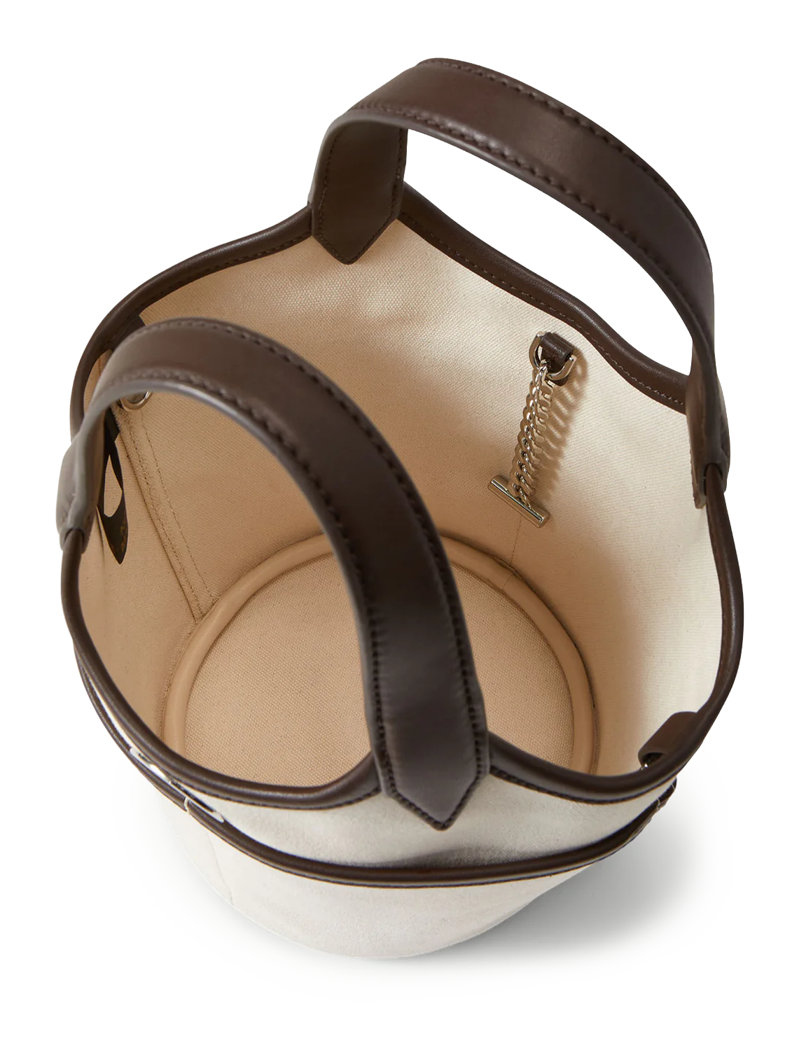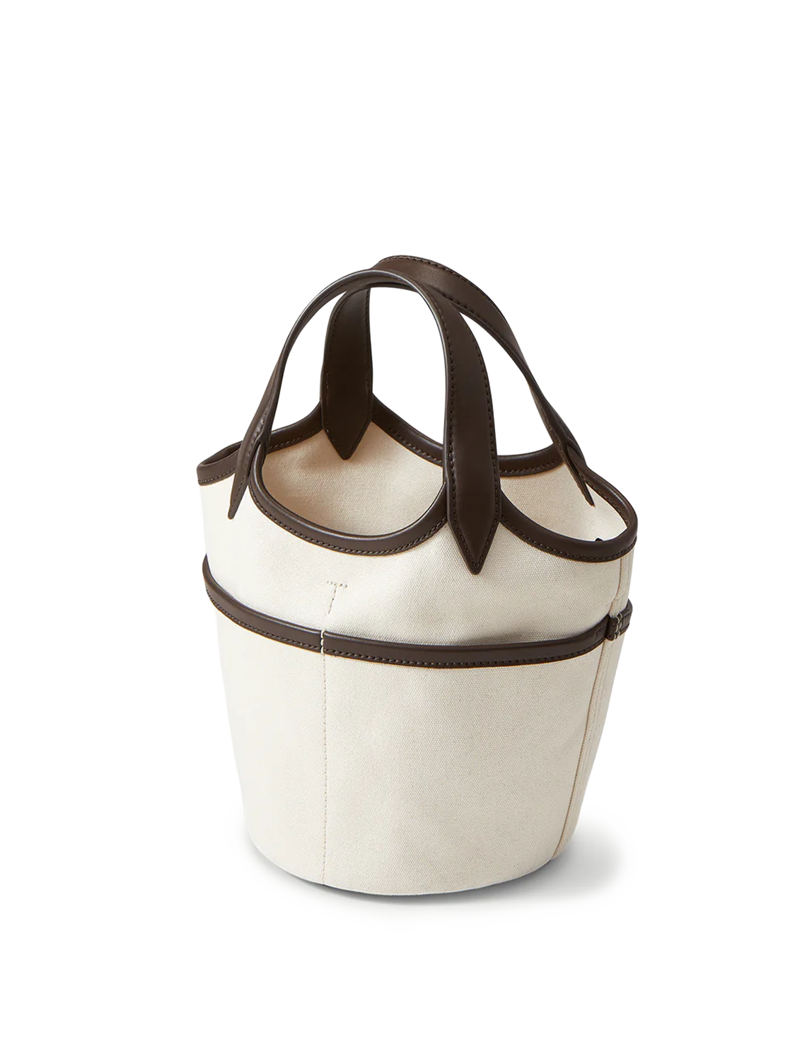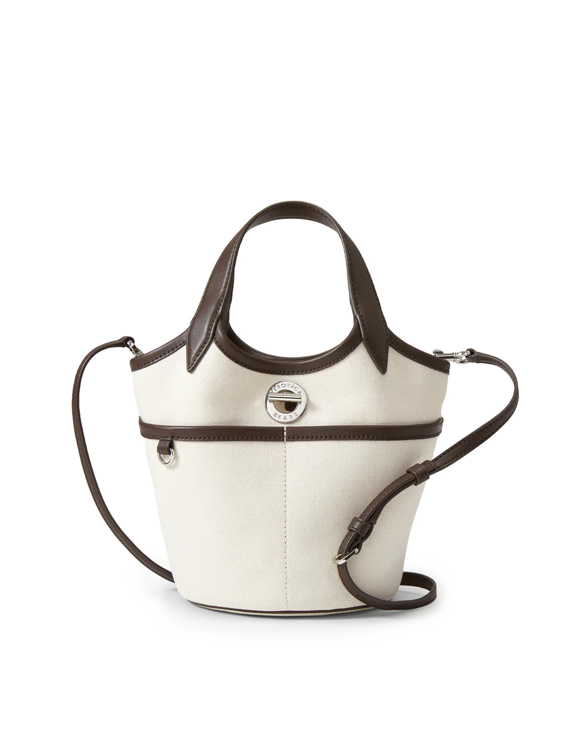 The Anchor bag is your go-to for everyday essentials. Crafted from sturdy yet lightweight ecru cotton canvas, it features espresso-brown leather double top handles, plus a matching adjustable, removable strap for a seamless transition from tote to crossbody. Structured sides and a flat base allow it to stand upright for easy access, while silver toggle hardware adds a polished finish. An interior pocket keeps smaller items organized. Perfect for week-to-weekend—just grab and go.