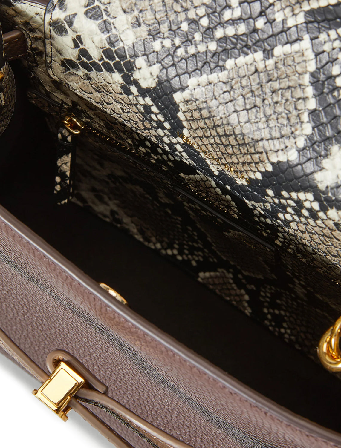 The Dash you know and love—now in a fresh new shape. Crafted from light brown pebbled leather, the updated Dash silhouette features a structured top handle, a slightly taller body for added capacity, and a full-flap magnetic closure to keep your essentials secure. Along with Veronica Beard's signature adjustable belted strap, it includes a removable, adjustable shoulder strap for maximum versatility and an interior zip pocket for easy organization.