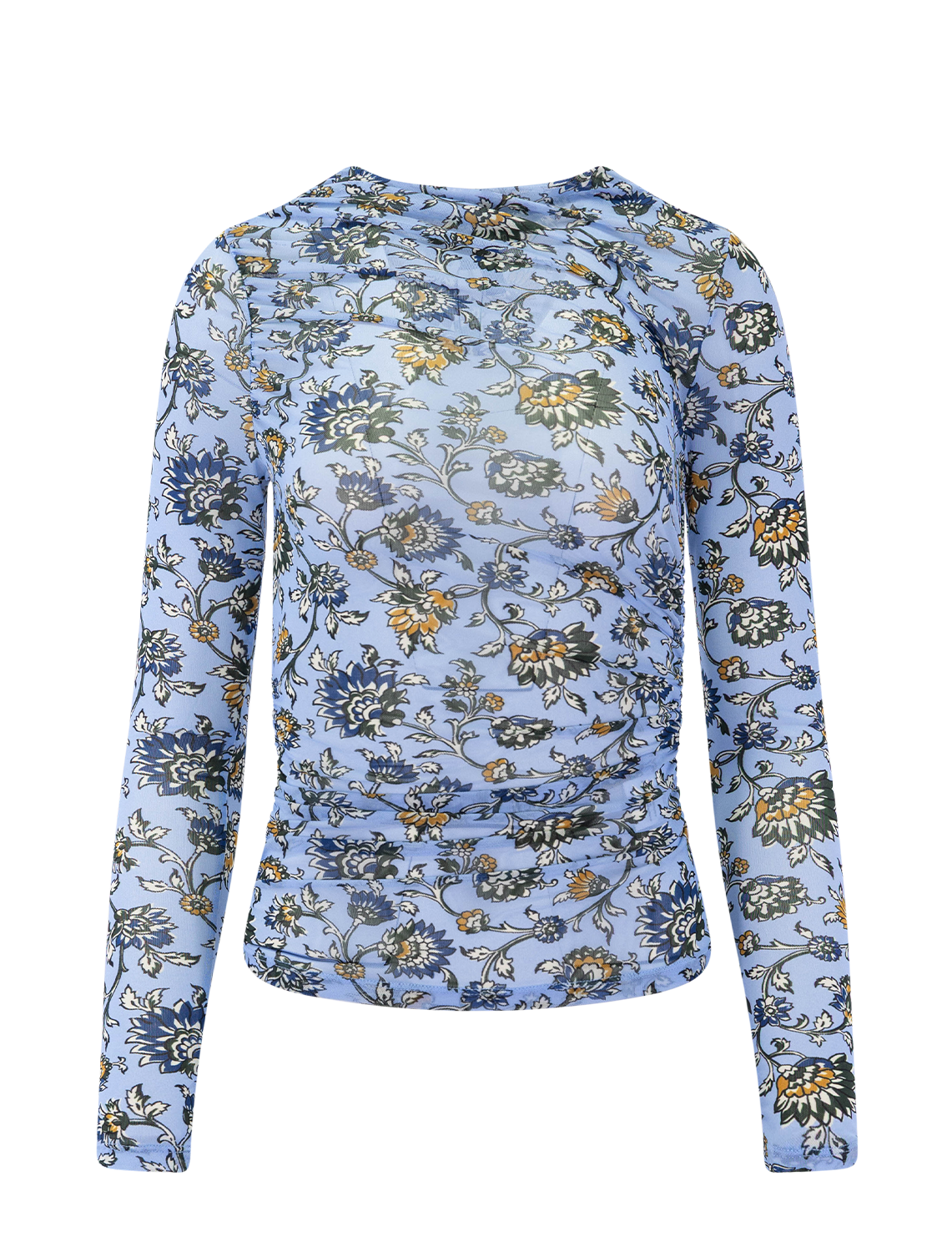 Veronica Beard's Long Sleeve Sylviani Top in Ice Blue Multi Print.
