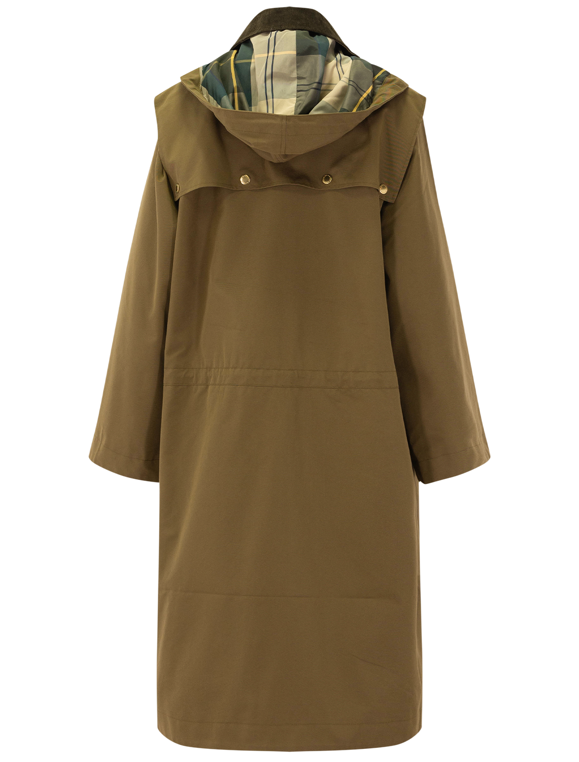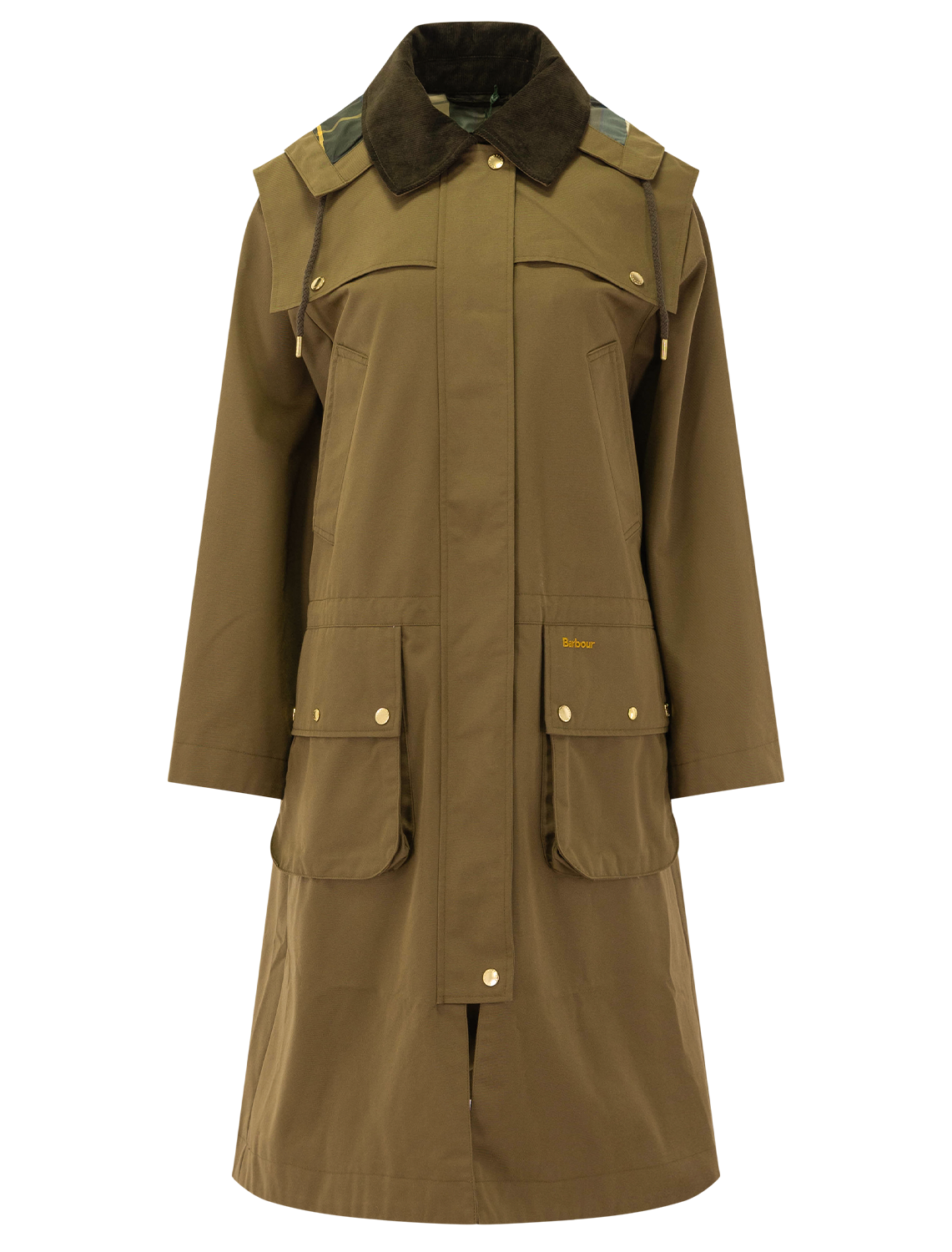 Stay stylishly prepared for unexpected showers with the Barbour Bilsdale Showerproof Jacket. Its longline silhouette and bright brass studded yokes add a modern edge, while the detachable hood and needlecord collar offer versatility. A dropped waist with shock cord adjustment ensures a tailored fit, and the tartan buggy lining adds a classic touch. Perfect for rainy day adventures.