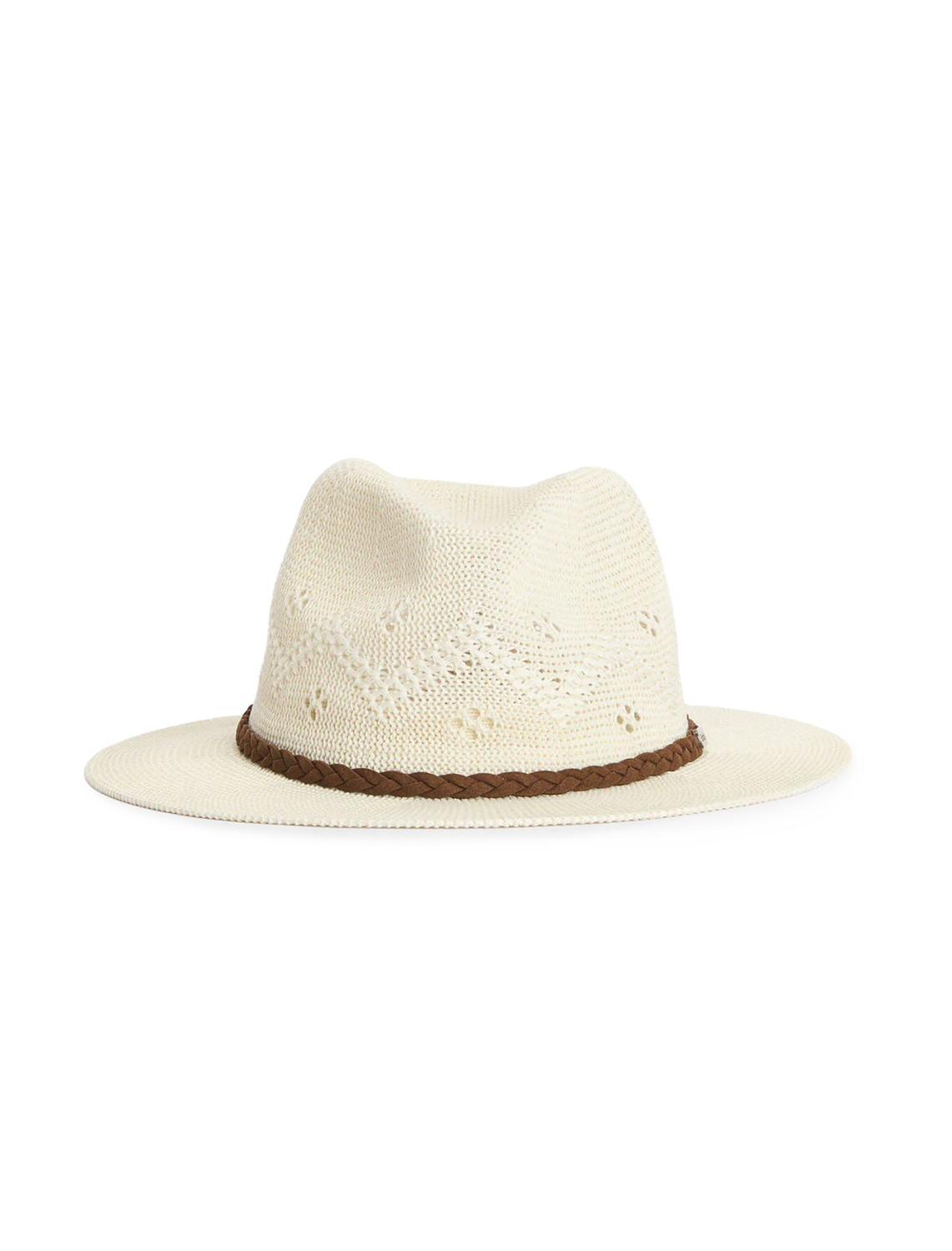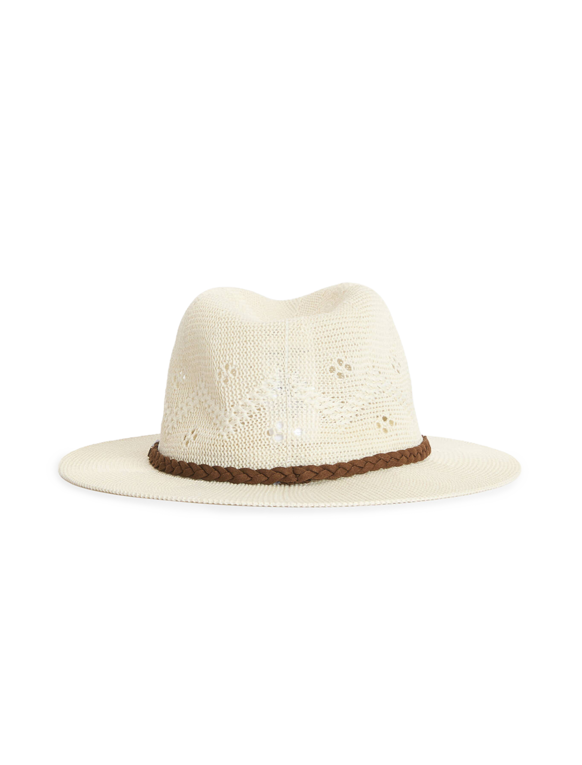 Crafted in a crochet-like design for a breezy summer feel, this trilby is detailed with a braided leather headband for a traditional country look, finished with a subtle metal ID bar to the side.