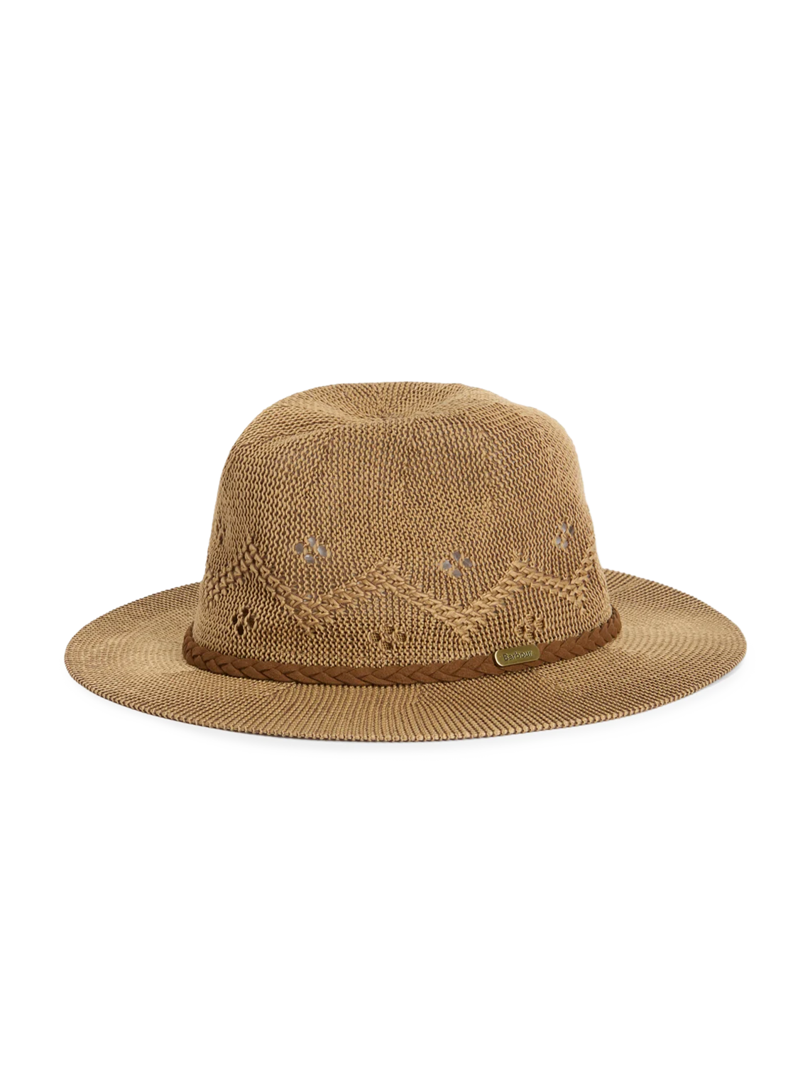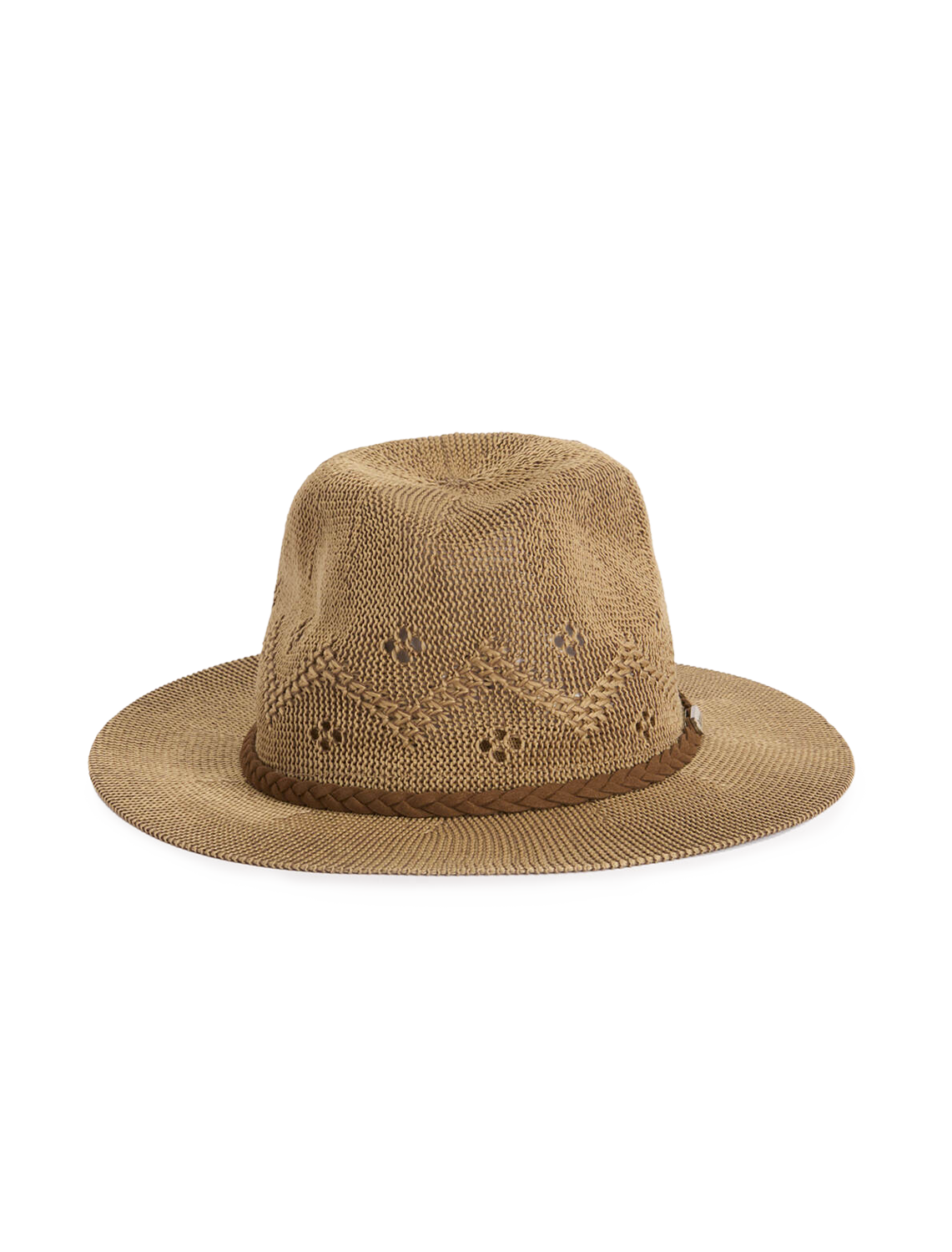 Crafted in a crochet-like design for a breezy summer feel, this trilby is detailed with a braided leather headband for a traditional country look, finished with a subtle metal ID bar to the side.