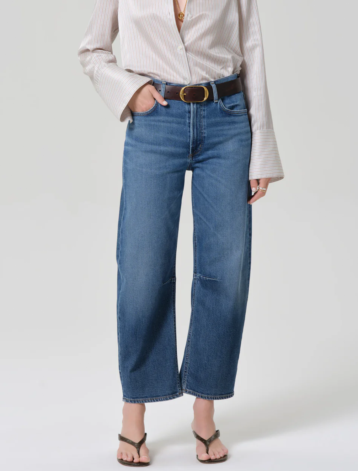 The Miro offers a refined take on the barrel silhouette, sitting high at the waist with a relaxed shape that softly tapers to the ankle. Crafted from comfort-stretch regenerative cotton denim in the Benson wash—a medium indigo—it combines structure with ease for all-day wearability. Effortless and versatile, it’s a timeless style with a modern point of view.