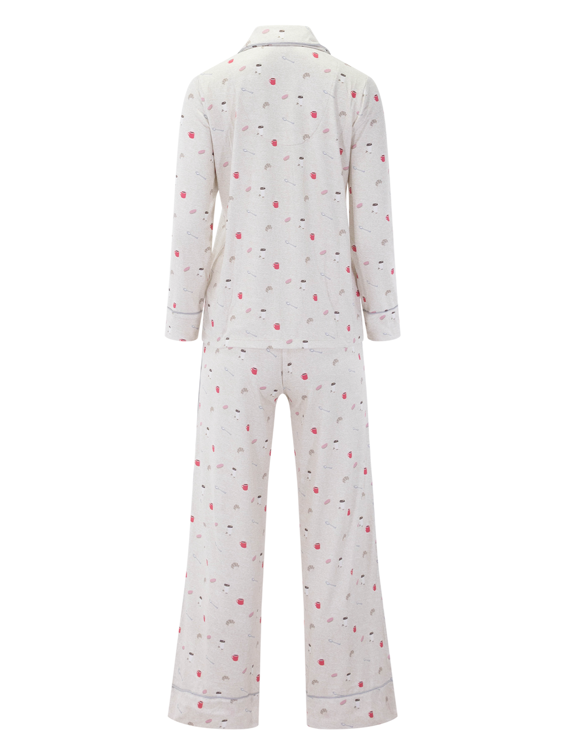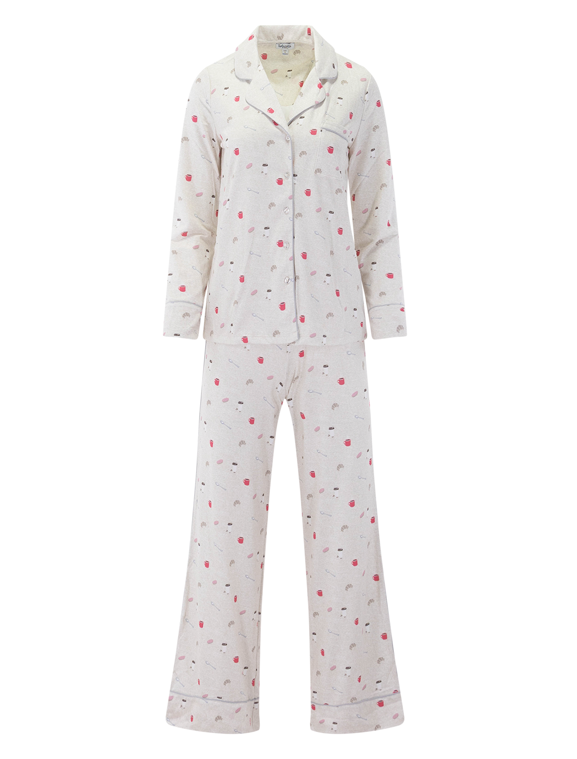 Made from Splendid's brushed-for-softness Pillowsoft fabric, this PJ set features a whimsical print on a notch collar button down and matching drawstring waist pants. This set has a slight sheen, minimal texture and an extra cozy feel.
