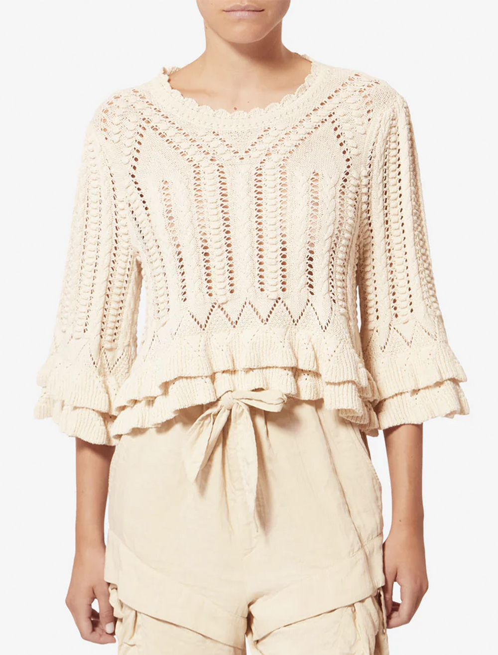 frilly cotton norma knit top in ecru