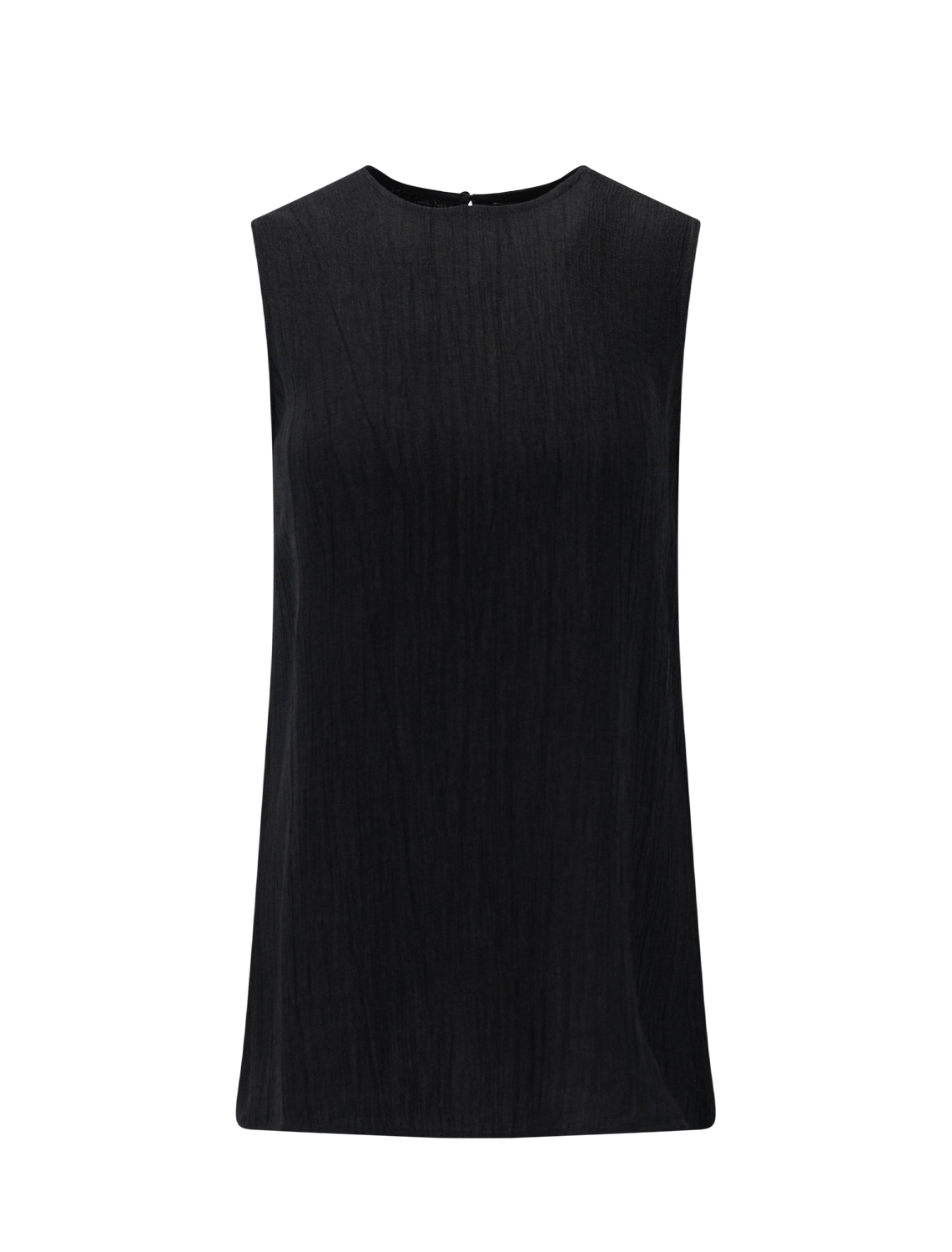The Malia Top by Anine Bing in Black is a sleeveless shift-style top crafted from lightweight fabric for effortless texture and movement. Side splits add ease and subtle detailing, making it a versatile wardrobe staple.