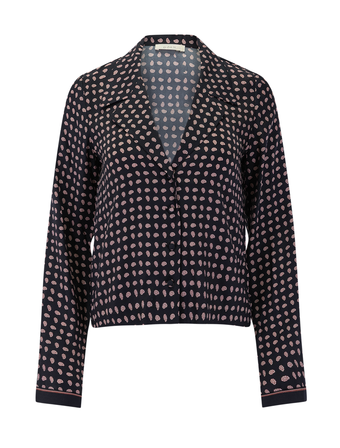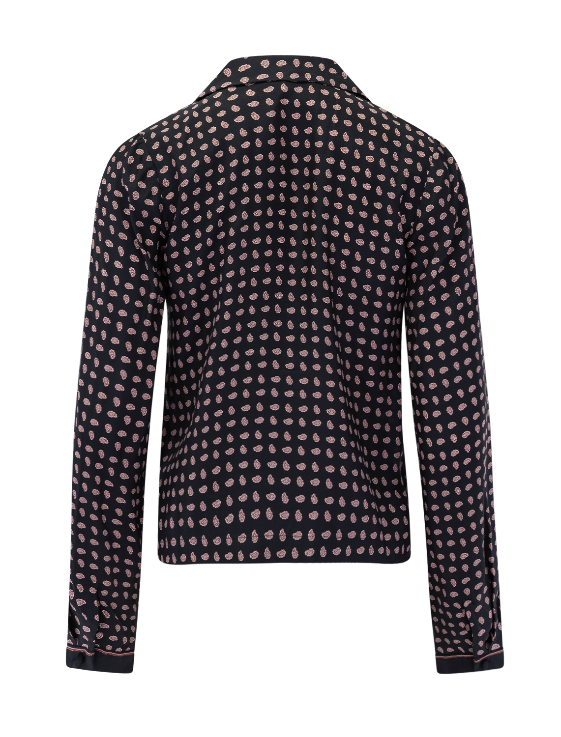Reimagined for Fall in our ‘60s-inspired Cardinale Foulard print on silk-viscose twill, the Juliana Top features a notched collar, a fitted silhouette, and straight, full-length sleeves finished with placed borders. Side slits at the hem lend ease of movement, while self-covered buttons extend down the front.