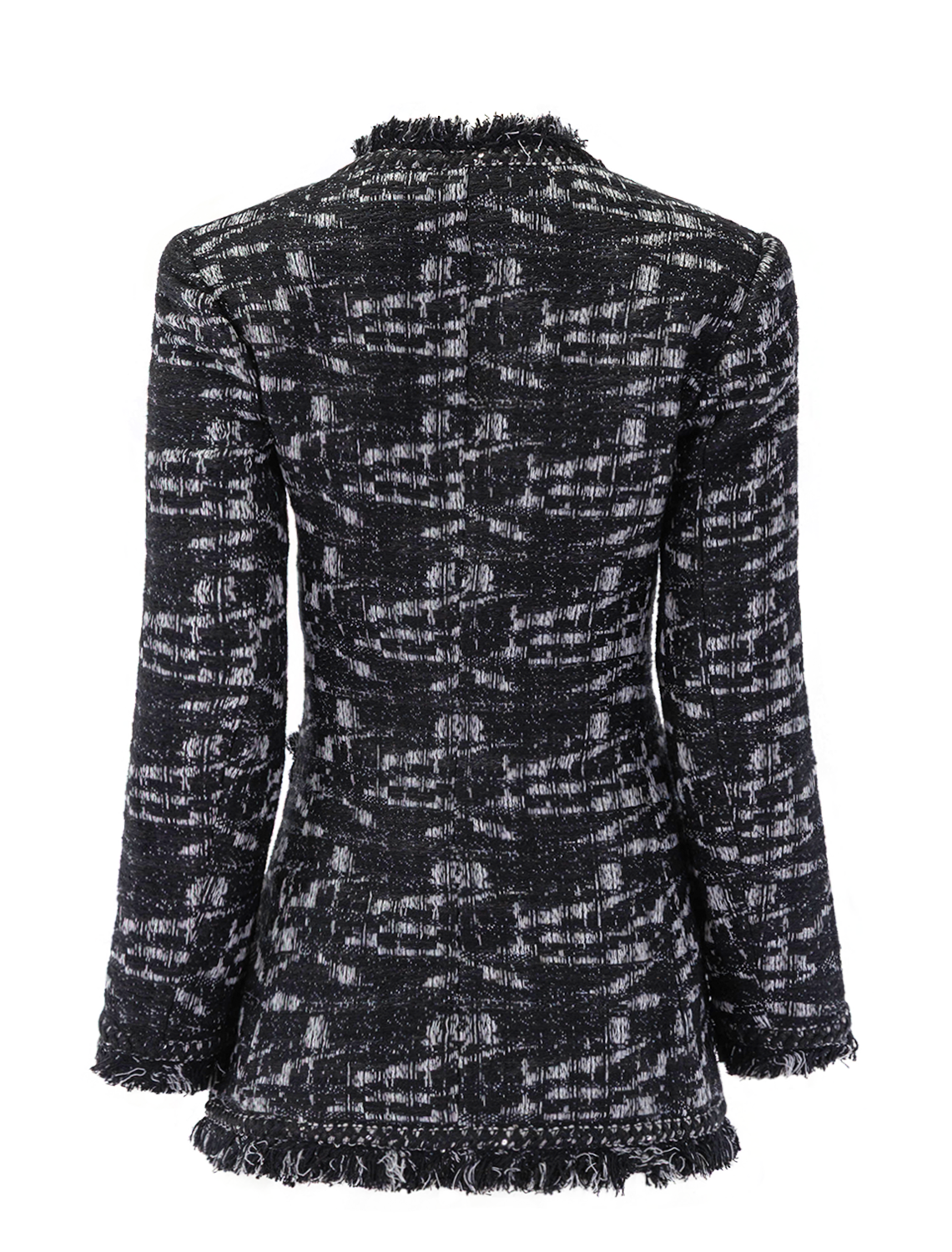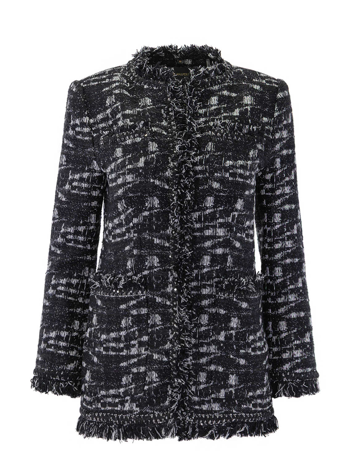 This Kobi Halperin "Gleb" jacket is crafted in a textured two-tone heathered weave with braid and fringe trim.