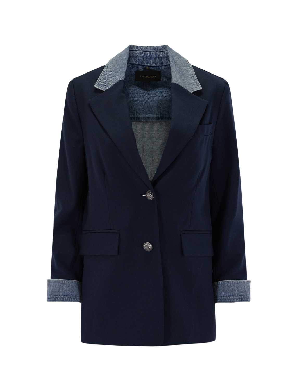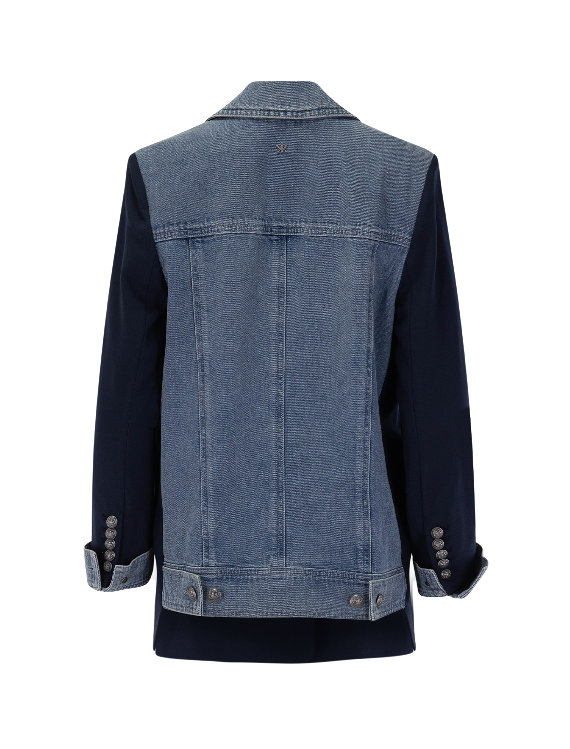 This Kobi Halperin "Silva" jacket combines refined twill with casual denim for a contemporary effect, complete with bright silvertone buttons.