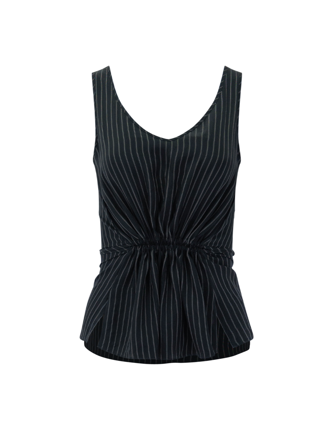 Cut for a relaxed fit, this tank top features a scoop neckline and adjustable drawstrings to tie and cinch the waist. A novelty update to Theory's Washed Twill, the fabric is detailed with a custom stripe pattern while maintaining the same look and soft drape. It's made in Japan using triacetate sourced from certified responsibly managed forests.