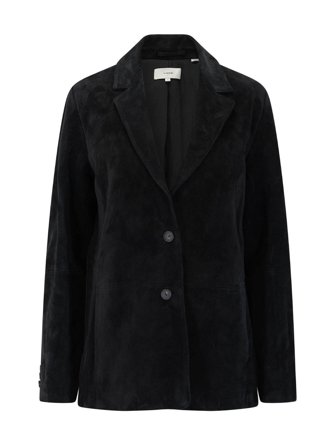 Tailored with a boxy, oversized fit and padded shoulders, Vince's best-selling, buttery suede blazer returns for the season in a classic black.