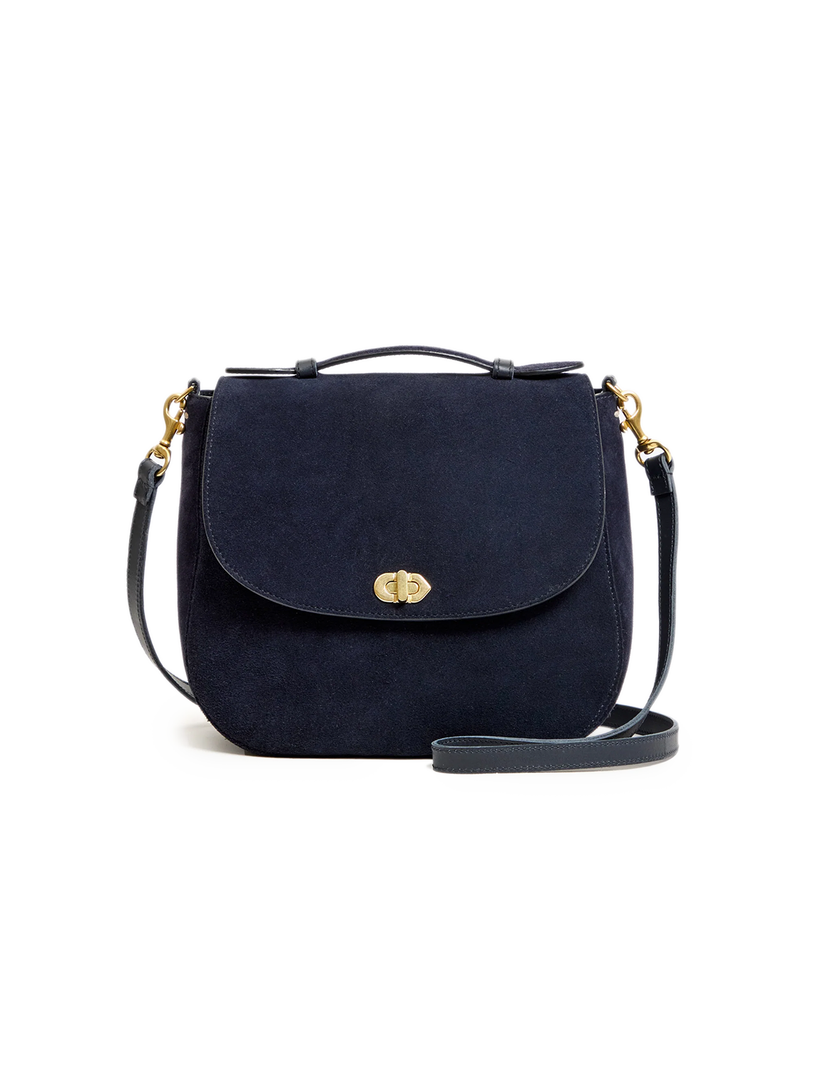 Louis Louis, a bag so nice you say it twice with a turnlock closure, back pocket, and three straps: shoulder, crossbody, top handle.