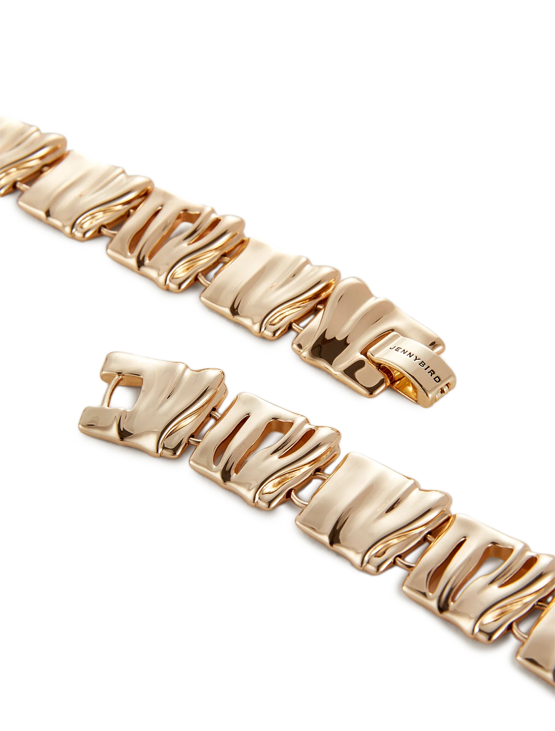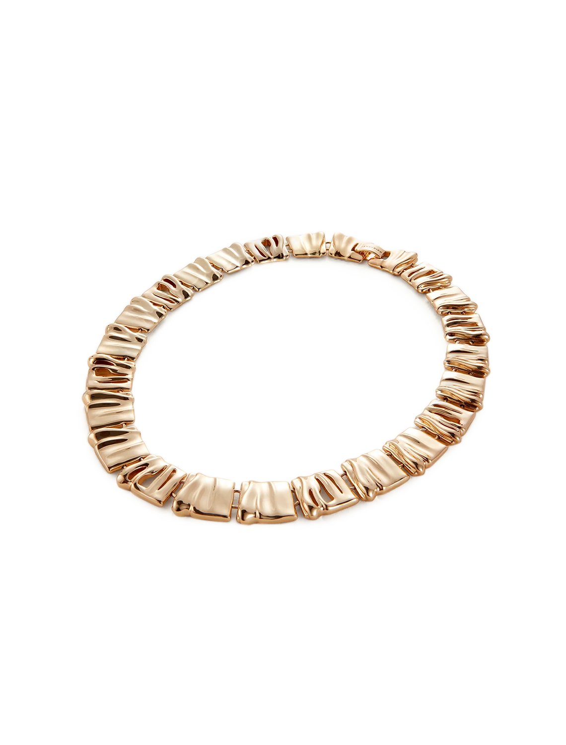 Organic square tiles mirror sand dunes shaped by natural winds. Each square is linked together forming a dynamic gold necklace full of texture. Finished in high-polish gold.