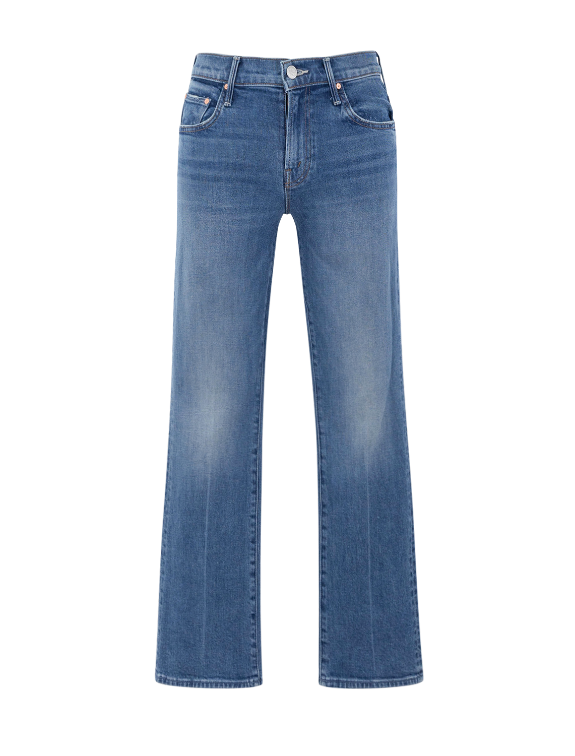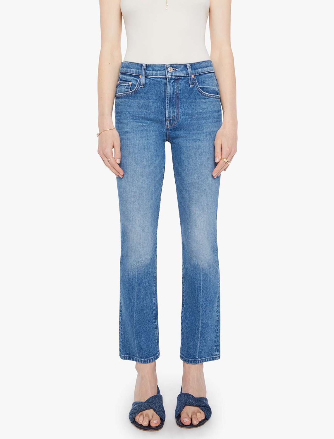 Flying high. This iconic high-rise bootcut has an ankle-length inseam, zip fly and a clean hem. Made from semi-rigid SUPERIOR denim, Get Two Birds Stoned is a mid-blue with whiskering and fading at the knees.
