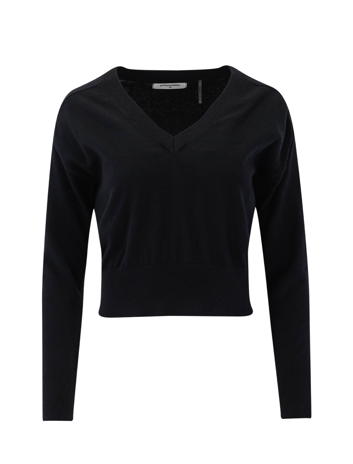 The Georgina Sweater is crafted from a blend of 95% cotton and 5% cashmere, marking Perfectwhitetee's first use of cashmere for a touch of added luxury. Designed with a v-neckline, long sleeves, and a banded bottom, it’s a timeless silhouette with elevated softness.