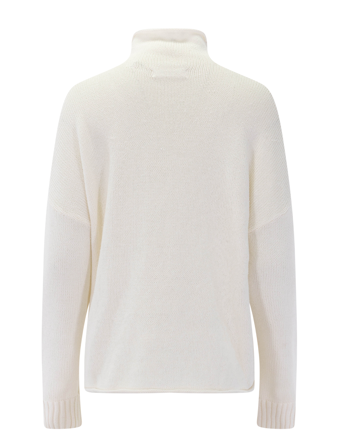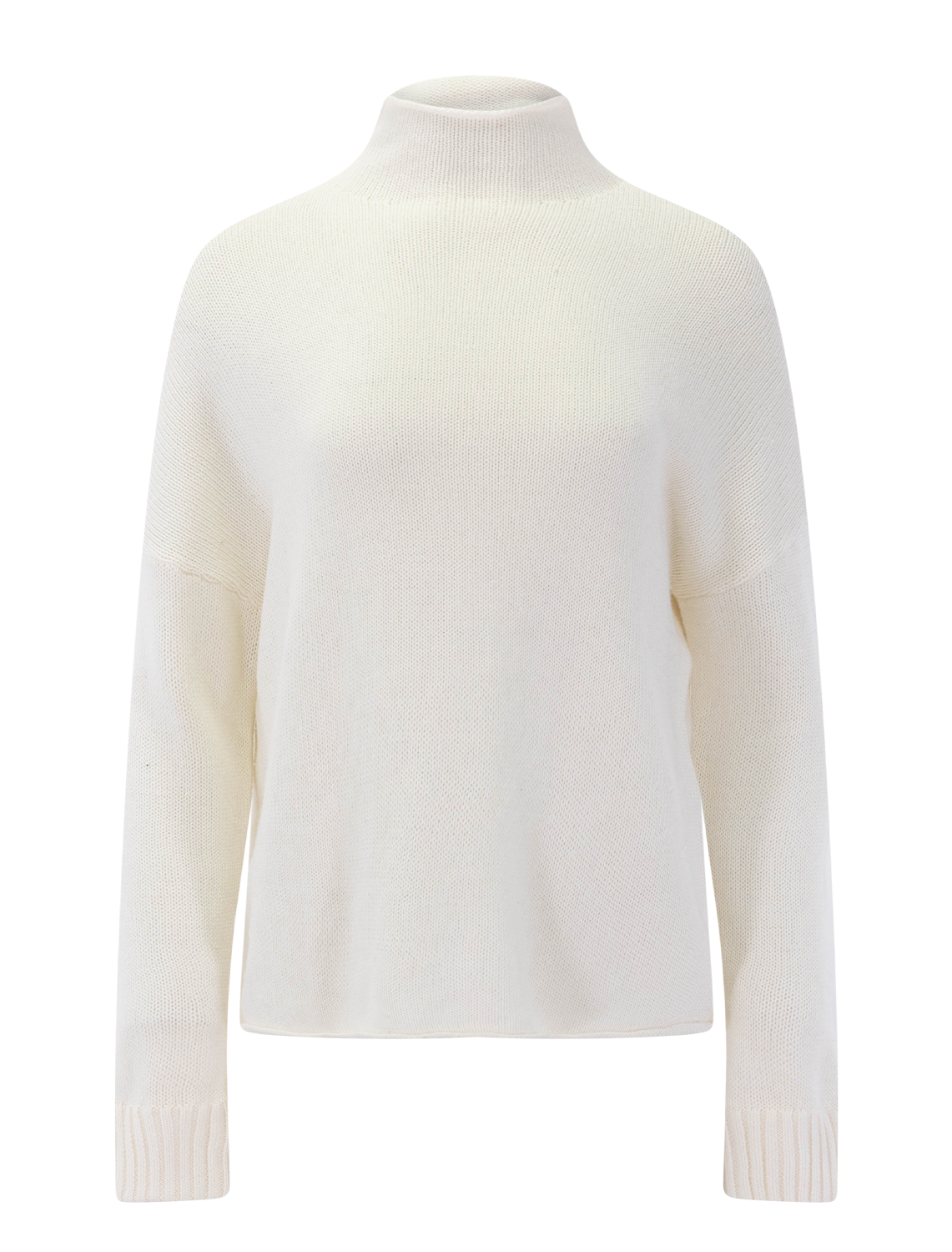 The Nova Sweater is crafted from Perfectwhitetee's new cotton-cashmere blend, designed for a soft hand feel with just the right amount of warmth. This full-length silhouette hits at the hips and features a stylish roll-neckline that keeps you warm without the weight of a traditional turtleneck.