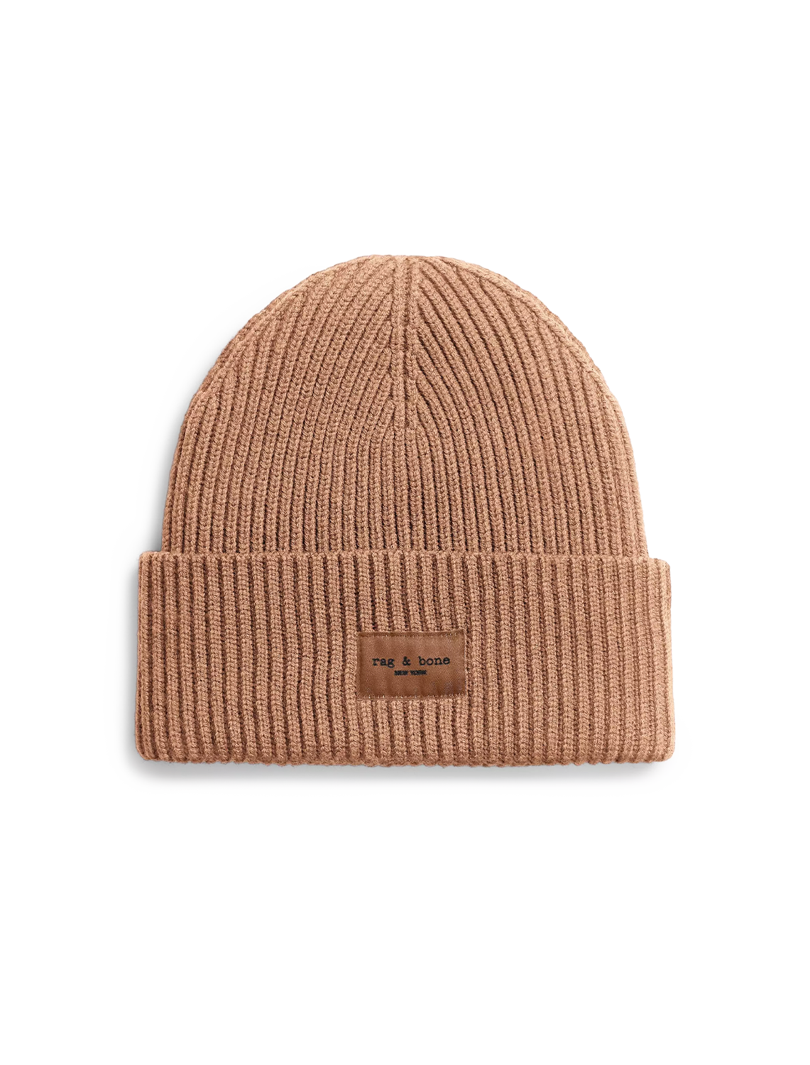 A cold-weather staple. Knit from a soft, extra-fine merino wool blend, this beanie hat is designed for a snug fit with a folded brim featuring a logo patch at the center.
